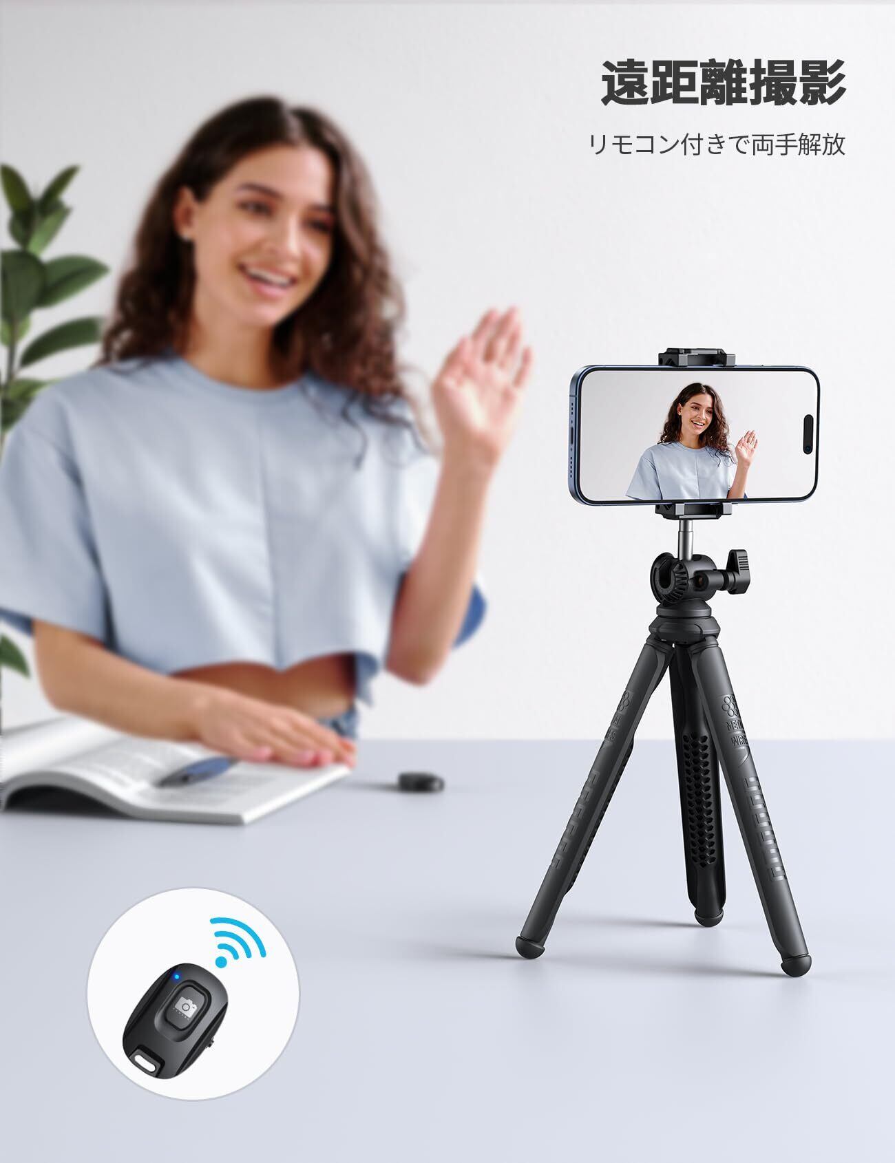 【多機能 3脚】 くねくね スマホ 三脚 スタンド リモコン付き : Lamicall ミニ 三脚 カメラ コンデジ 携帯 1/4インチネジ フレキシブル GoPro ビデオ 巻き付け 360度 調整 固定 撮影 自撮り ワイヤレス 持ち運び 雲台 アンドロイド iPhone 16/15/14 plus pro pro max mini Xperia キヤノン ニコン ソニー などに対応 ブラック
