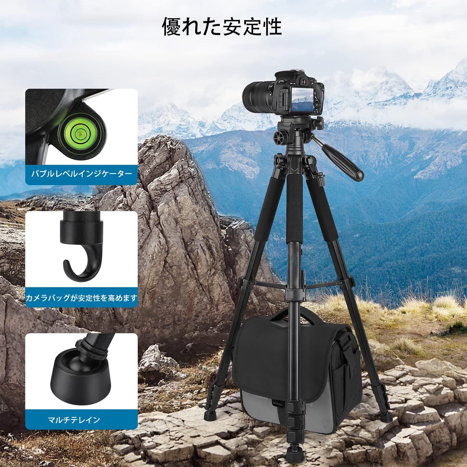 【360度パノラマ撮影】洗練された3WAY雲台は、三脚を横/縦/水平方向どれでも自由に調節できます,構図の微調整や手ブレ防止を重視したい方に適しています、水準器も搭載されていますので、カメラ 水平状態を一目で確認することができます。