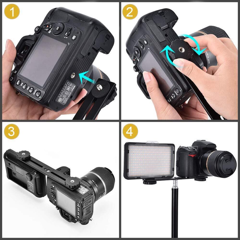 UTEBIT カメラプレート 撮影用 1/4 3/8 変換ネジ 雲台 三脚 プレート 2台 取り付け可能 雲台 二股 ホットシュー付き カメラマウント 毎側負荷荷重2.5kg 固定 ビデオ雲台 撮影 台 ビデオライト/ストロボに対応 一脚 l字ブラケット スライディングプレート ストロボ ブラケット アクセサリー 20.3cm