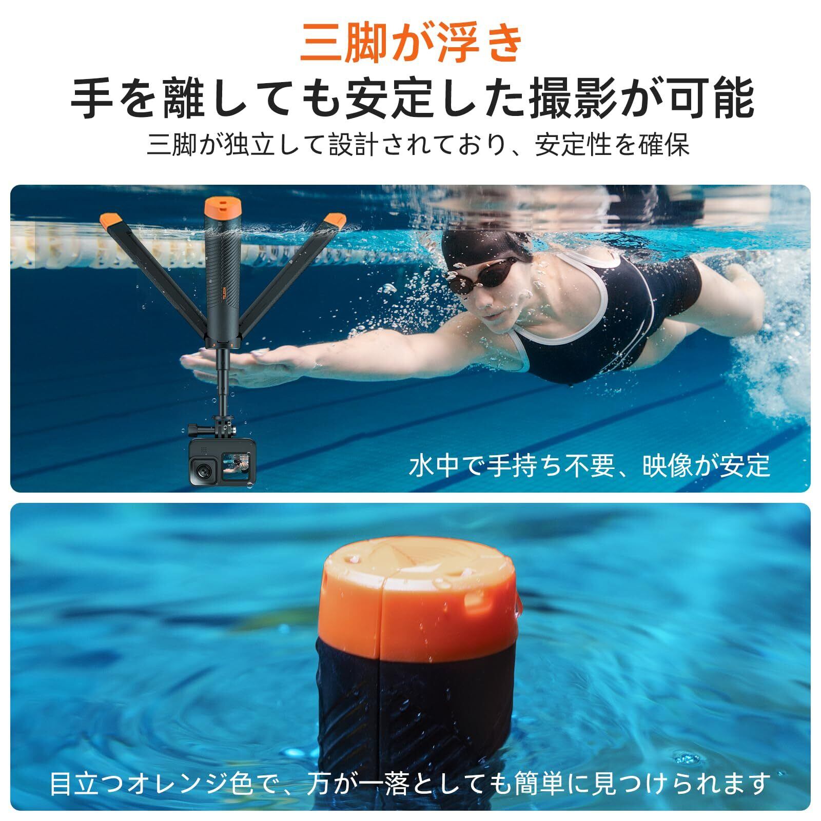 【多機能4-in-1設計】この製品は、フロートハンドル、ミニ三脚、防水伸縮自撮り棒、自撮り棒ハンドルの四つの機能を一体化し、撮影の全面的なサポートを提供します。防水設計により水中で優れたパフォーマンスを発揮し、素材はISO基準の塩水噴霧試験をクリアしており、品質もされています。目を引くオレンジ色のデザインは、ファッション性を備えるだけでなく、あらゆる環境で簡単に見つけられるため、安全性も向上します。