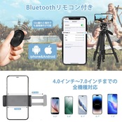 【スマホ&カメラ対応】三脚のパイプ径は26mmで4KGまでのカメラやスマホが設置可能です。上下・左右・縦横の動きが独立して操作できる3Wayタイプの雲台を採用、構図の微調整に便利。また、Bluetoothでスマホと接続するだけで使用でき、約10m離れた場所でも遠隔操作が可能です。リモコンにより、手振れも防ぐことができます。