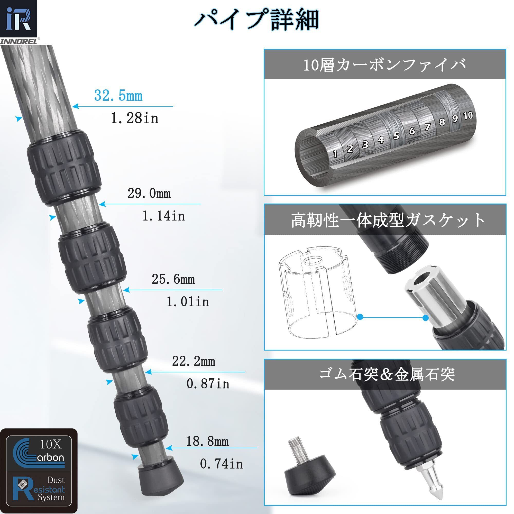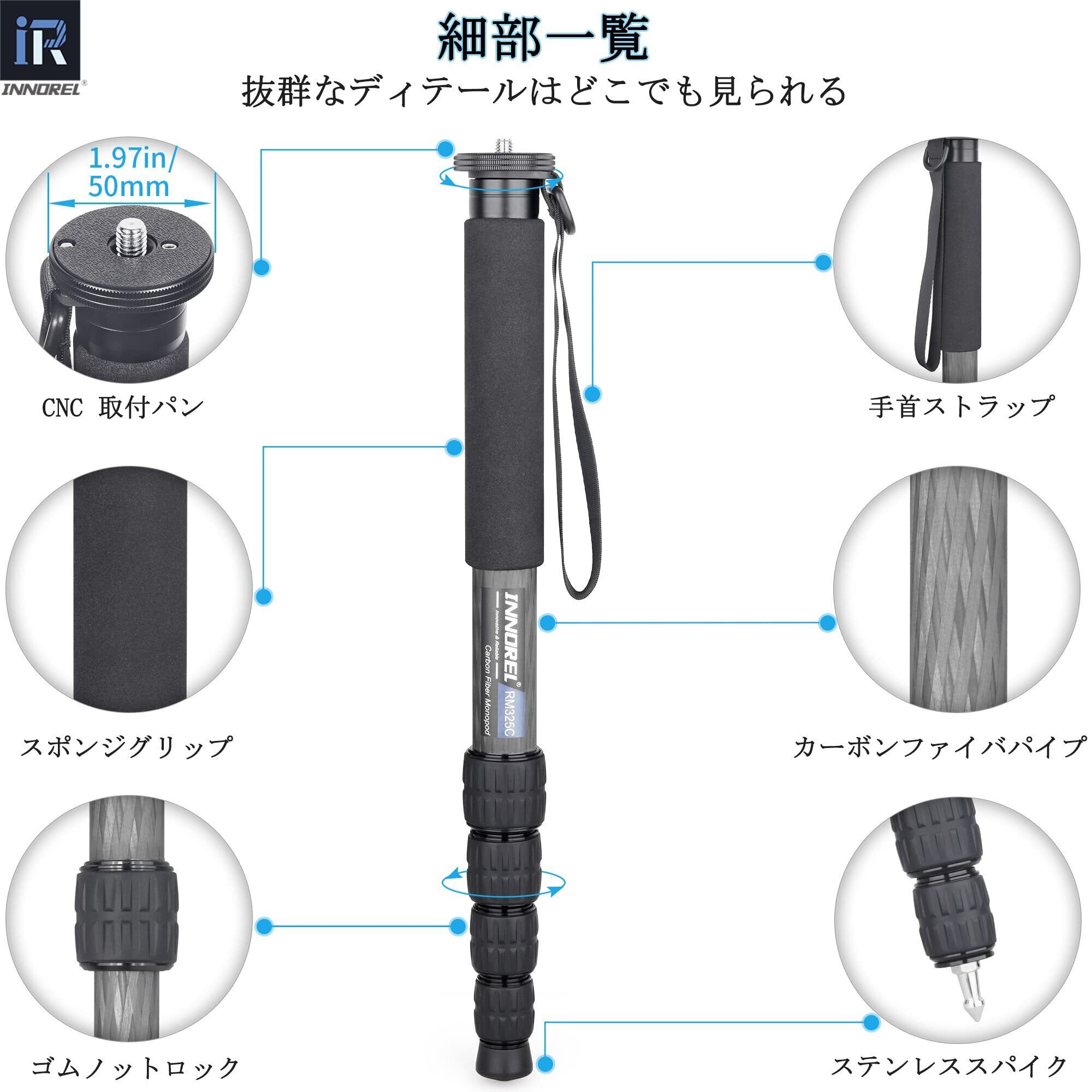 INNOREL 一脚 カメラ用 カーボン製 26lb/12kg耐荷重 5セクション伸縮可能 コンパクト 便利 軽量 旅行用(RM325C)