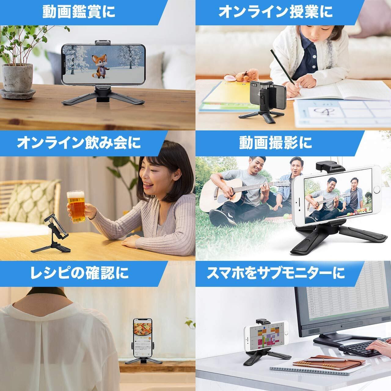 サンワダイレクト スマホ 三脚 軽量 80g iPhone14シリーズ対応 スマホスタンド 360°回転 カメラ/三脚 取付対応 200-DGCAM018