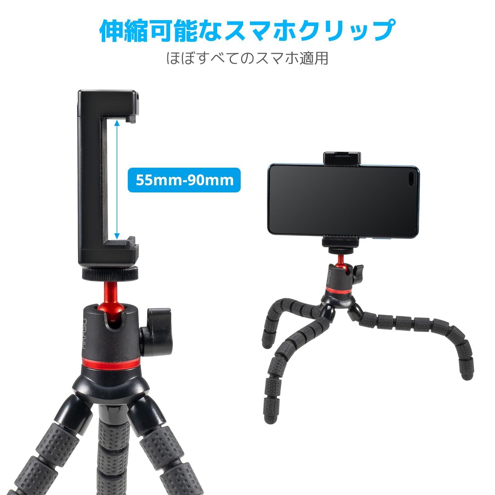 【360°全方位フレキシブル調整で、あらゆる撮影シーンに対応】オクトパス三脚の3本の脚は高強度の柔軟性を備えており、木の枝や手すり、岩などの不規則な表面にも簡単に固定可能。ローアングル撮影やアウトドア、室内でのクリエイティブな撮影にも最適です!