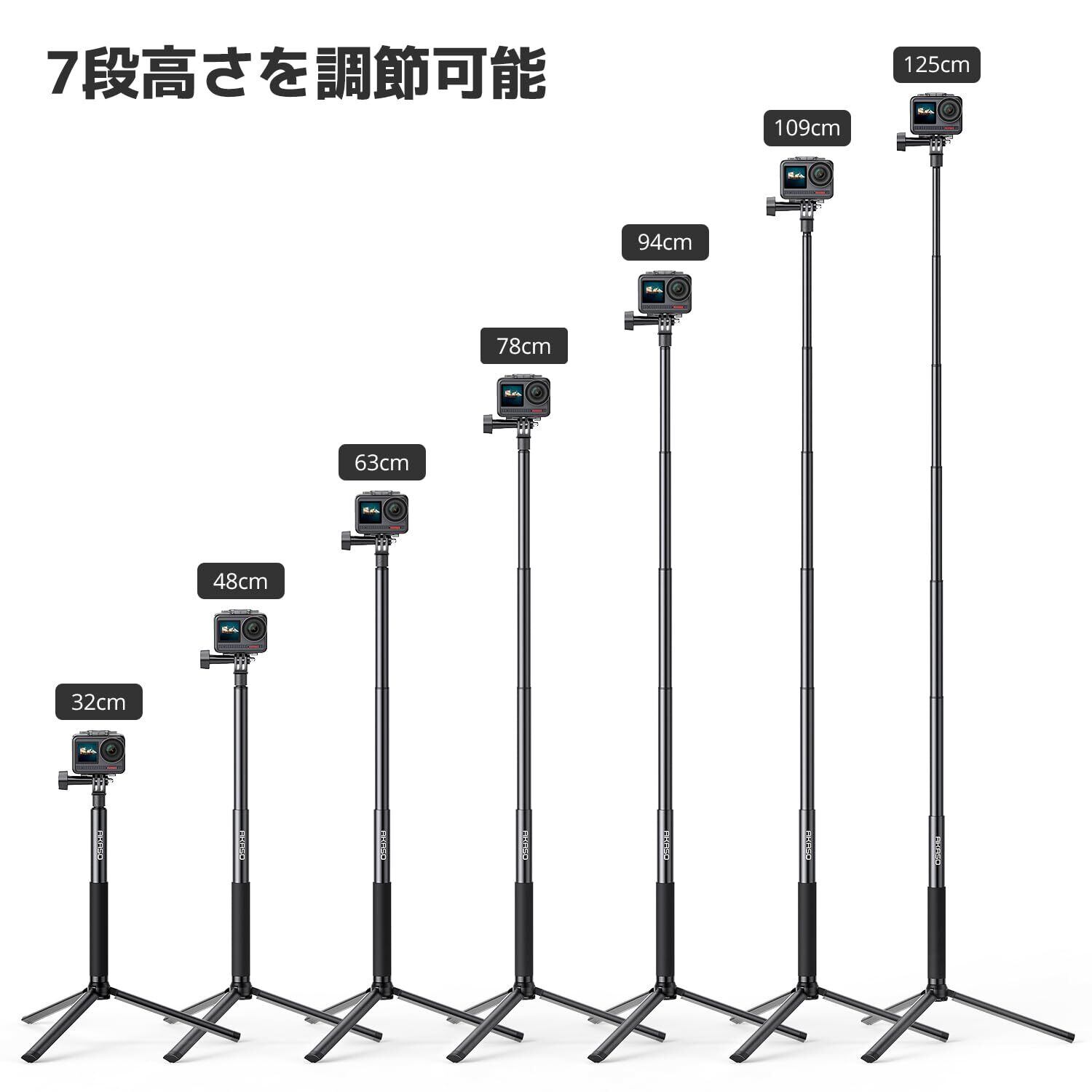 組み立てと延長が簡単:延長自撮り棒は7つの異なる長さに延長でき、27.5CMから120CMまで素早く長さを調整できます。 重さは131gで持ち運びも楽々です。