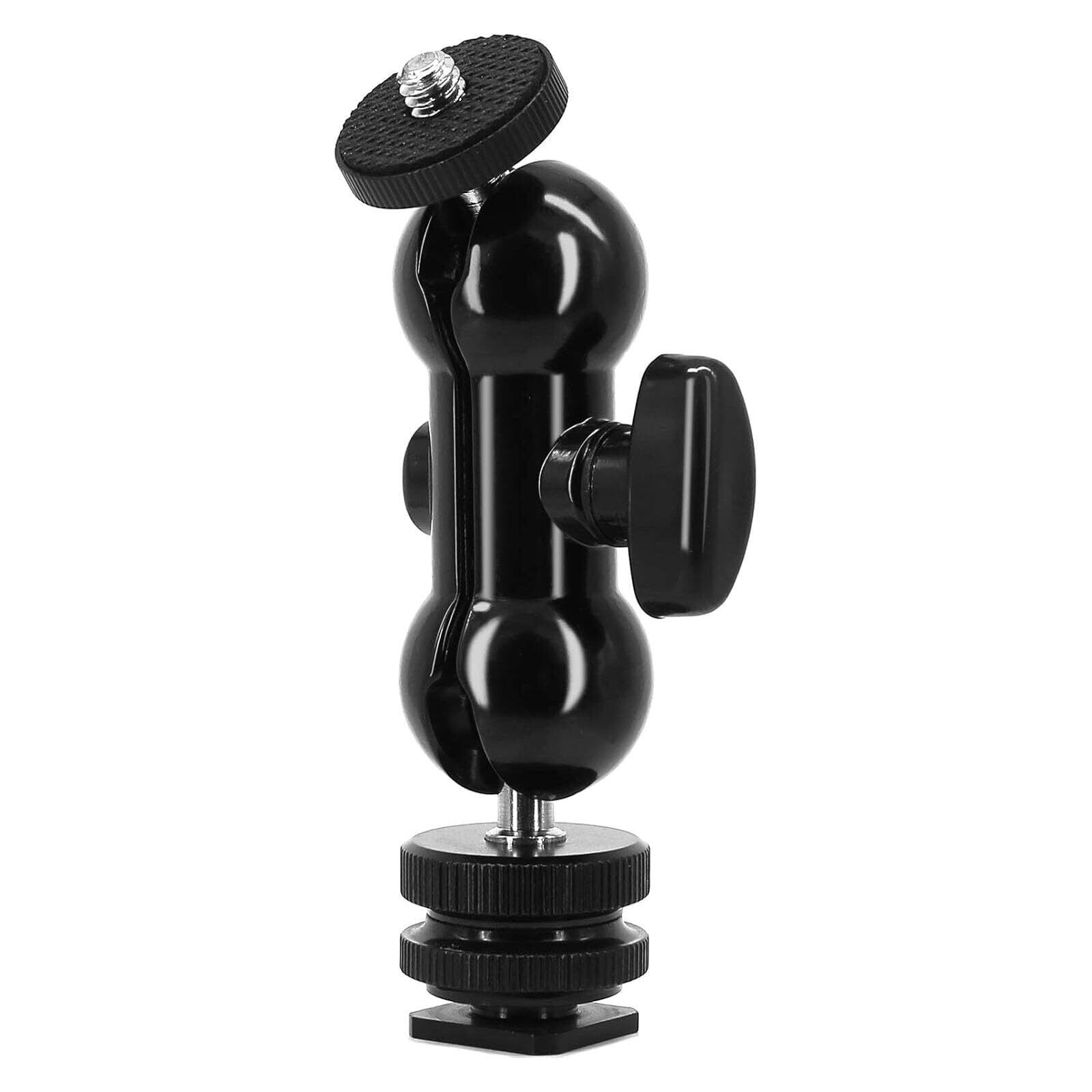 Airika マジックアーム コールドシュー付き ダブルボールヘッド 1/4"ネジ付き コールドシューアーム 延長アーム 180°角度調整可能