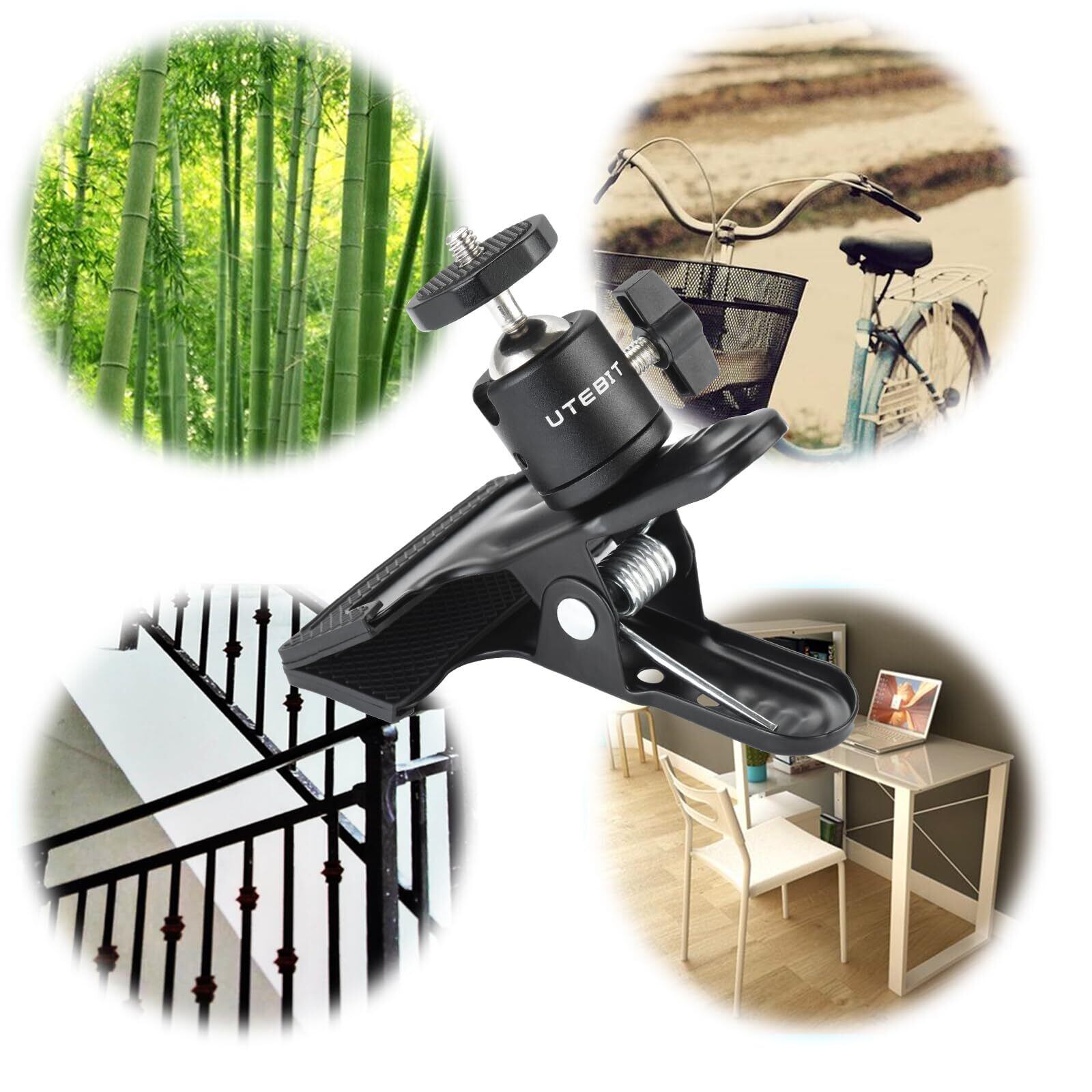 UTEBIT クリップ 雲台 2個入り カメラマウント 自由雲台 強力 固定 クリップ VIVE/アクションカメ/一眼レフ/ストロボ/DSLR適応 カメラスタンド 1/4ネジ 360度 どこでも挟める 最大荷重1KG ホルダー 挟み込み範囲55mm以下 黒