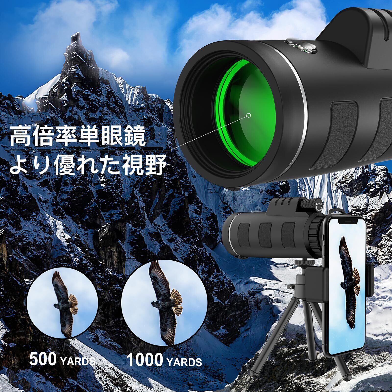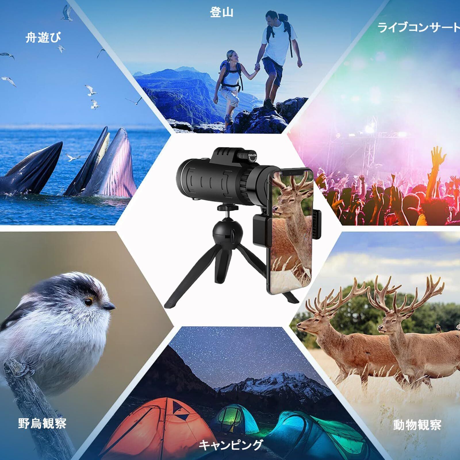 単眼鏡 望遠鏡 高倍率 持ち運びやすい スマホに簡単装着 高級BAK4プリズム 片手操作 小型 ライブ用携帯レンズ 伸缩三脚 スマホホルダー バードウォッチング/野球観戦/夜景 子供 誕生日 プレゼント 日本語説明書 収納袋付