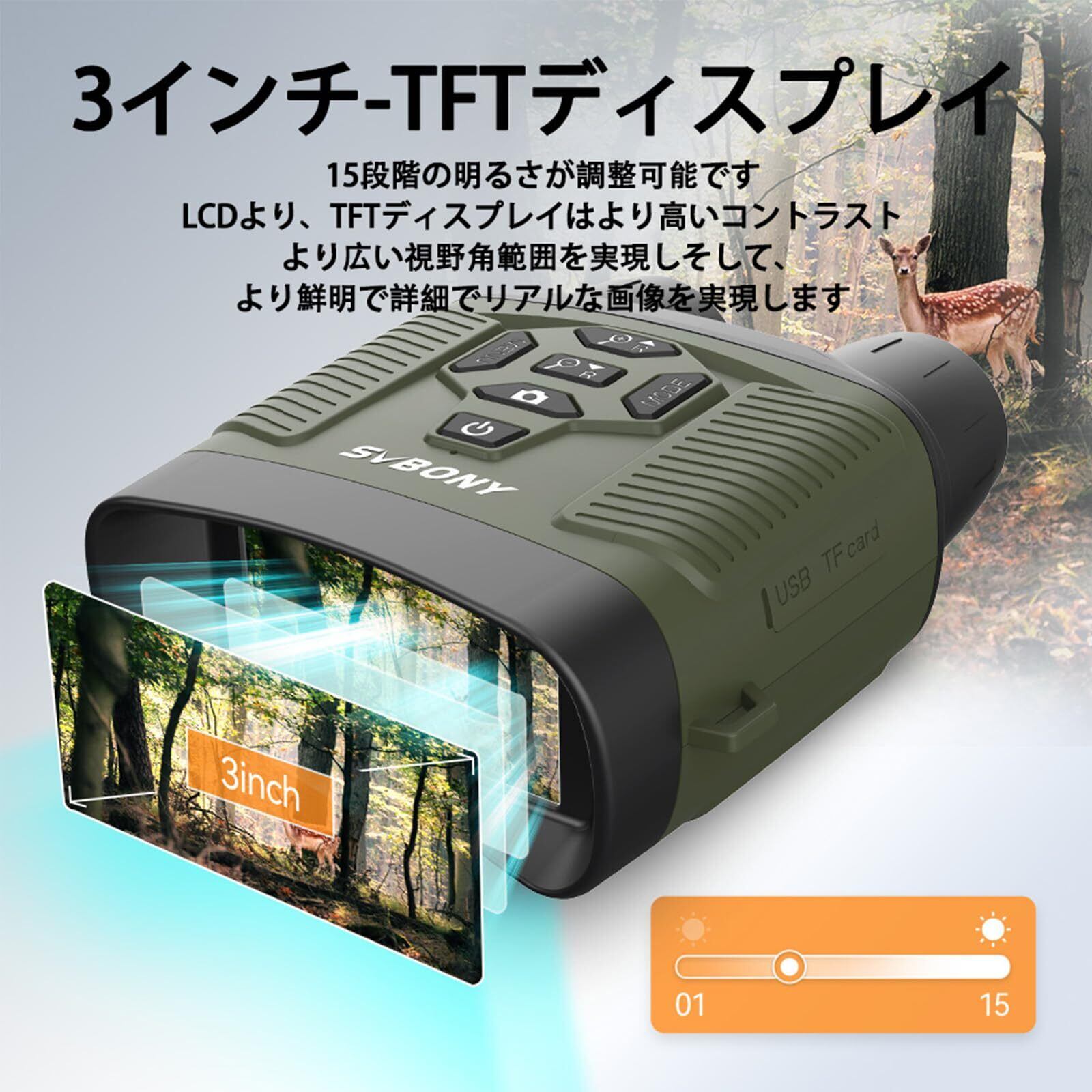 SVBONY 暗視スコープ 暗視鏡 小型 8倍デジタルズーム 3.0インチ TFTディスプレイ 赤外線 4Kビデオ 36MP写真 充電式 5000mAh 14時間使用可能 夜間録画 手ぶれ補正機能 日本語システム付き 日本語説明書付き 32GB TFカード付き 狩猟 野生動物観察 海釣り 防犯 監視 警備 サバゲー