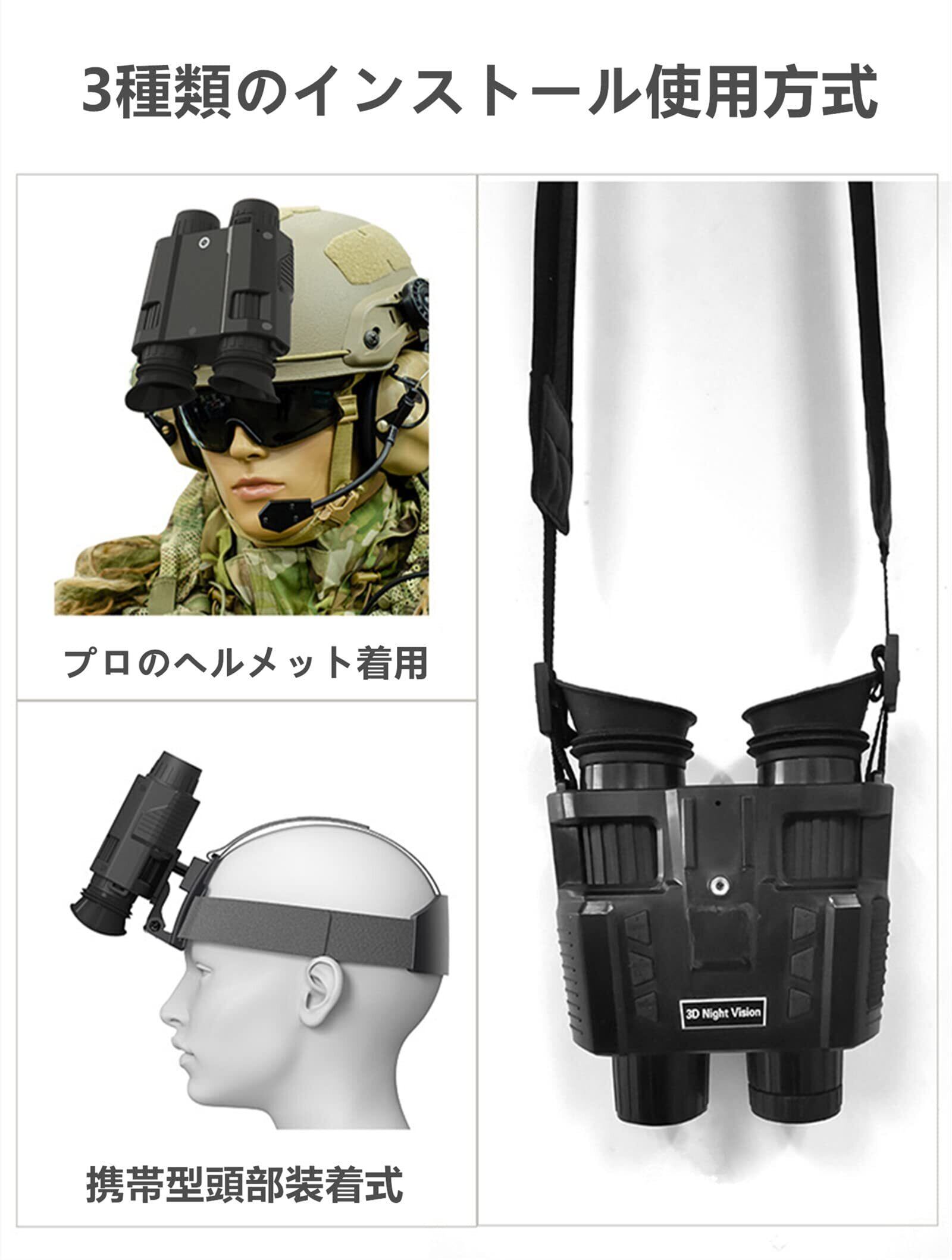 【ユニーク&バッテリー寿命】外観は完全に独立した双眼鏡設計を採用し、左右の目の視力補正を独立して調整できます。 暗視双眼鏡には3000MAHのリチウム電池が内蔵されており、電池寿命が長いです。 撮影時間は赤外線ライト点灯時で約4.5時間、赤外線ライト非点灯時で約13時間。