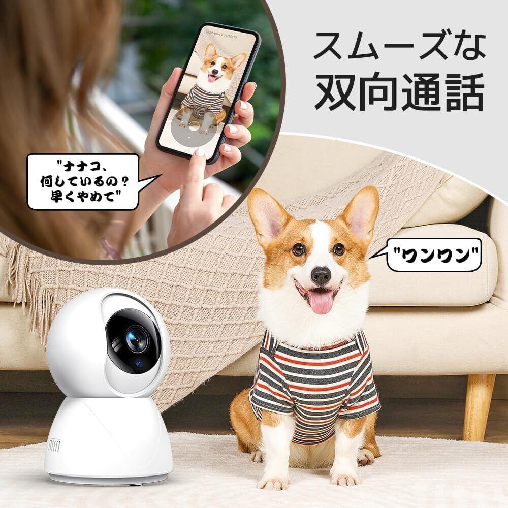 【動体検知アラート・通話機能】 内蔵マイクとスピーカーを搭載しておる ベビーモニター スマホ対応 できる ワイヤレスカメラ で、アプリを通じて外出先からでもスムーズに会話が可能な 室内防犯カメラ です。 ペットモニター を通じて、ペットをなだめたり、お子様やご高齢のご家族とコミュニケーションを取ることができる 遠隔カメラ です。さらに スマホで確認できる防犯カメラ として、動きを検知するとスマホに即時アラートが届く ペットカメラ アンドロイド対応 できるため、防犯対策はもちろん、家族やペットの見守りにも ペット監視カメラ を安心してお使いいただける 室内用監視カメラ です。