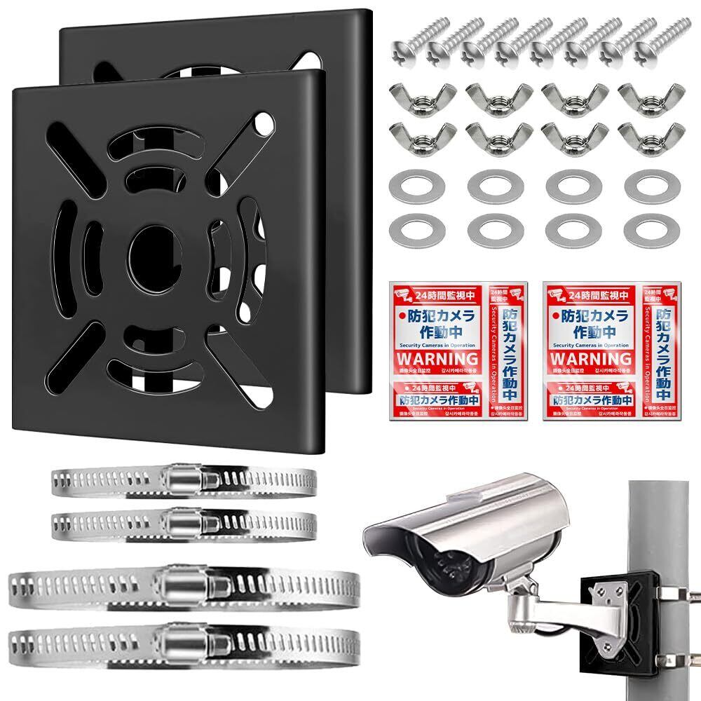 ◆kakkisan 防犯カメラ 取り付け金具 ポール 【最新スプレー塗装 】ブラケット スタンド ハウジング カメラ 穴開け不要 監視カメラ 円柱 角柱 ダミーカメラ 取り付け簡易 空き巣 対策 ボルト 防犯ステッカー2枚 付属 穴あけず バンドサイズ直径10cm /20cm 各2本 (ブラック)