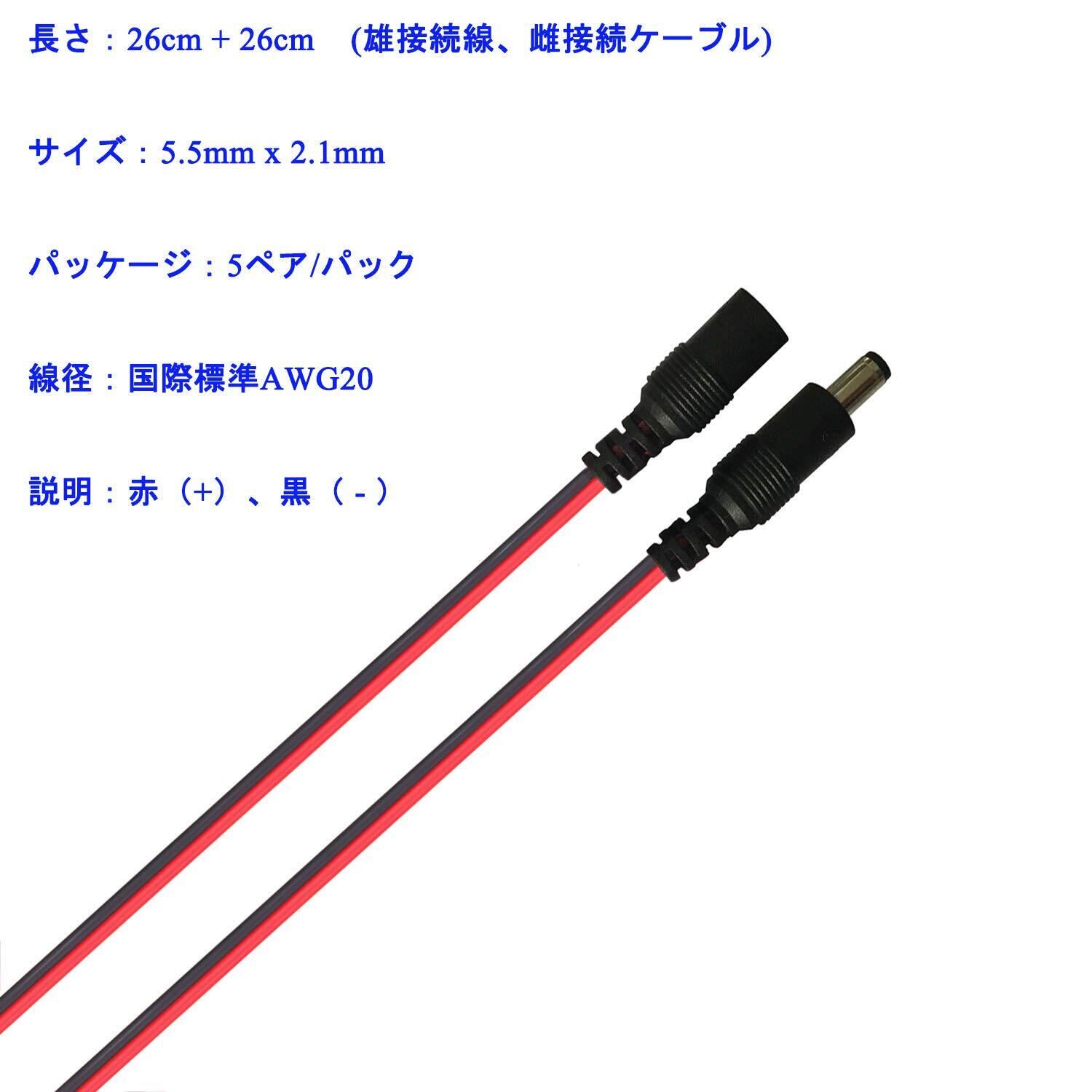 ◆Kabenjee DC電源コネクタ ジャック コネクタ 10x 5.5mmx2.1mm DCオス電源ピグテール+2.1×5.5mm DC メス電源ピグテール、50cm長DC電源クイックコネクタ、20AWG DC電源接続ケーブル、LEDテープ用DCプラグ、CCTVカメラ(10個/パッケージ)