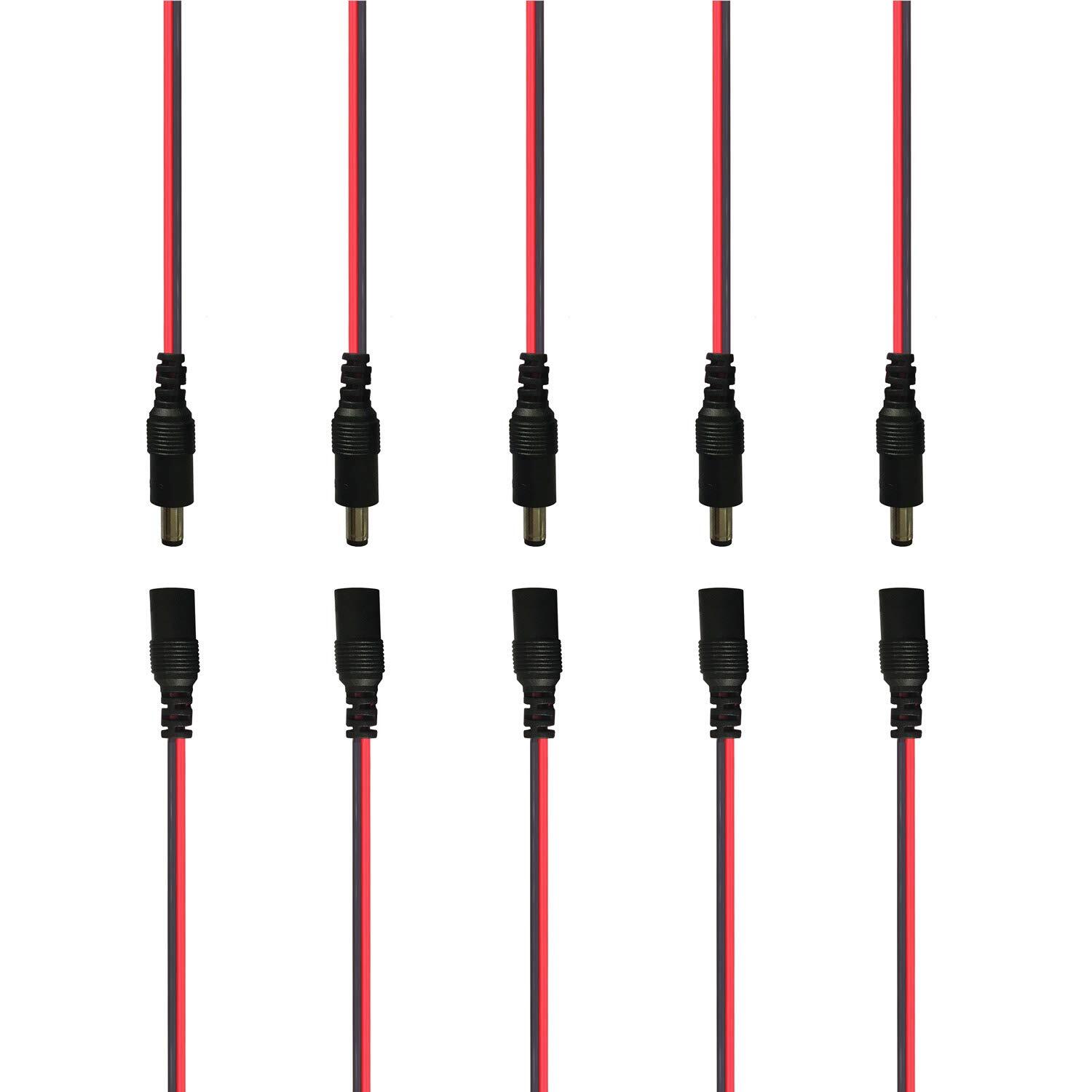 Kabenjee DC電源コネクタ ジャック コネクタ 10x 5.5mmx2.1mm DCオス電源ピグテール+2.1×5.5mm DC メス電源ピグテール、50cm長DC電源クイックコネクタ、20AWG DC電源接続ケーブル、LEDテープ用DCプラグ、CCTVカメラ(10個/パッケージ)