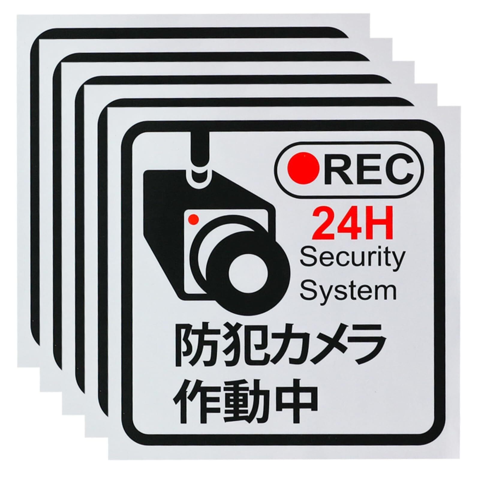【5枚セット】防犯ステッカー 防犯シール 約10×10cm 防犯カメラ ステッカー 防犯カメラ作動中 セキュリティステッカー 監視カメラシール 屋内屋外両用 窓 シール 盗難 防止 耐光/耐水/耐候 防犯