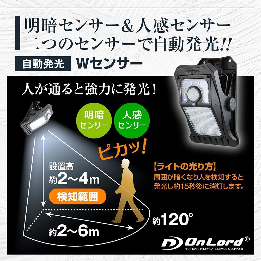 ◆オンロード(OnLord) クリッパ クリップ式 センサーライト 人感センサー ソーラーライト 屋外 防水 LED OL-336B