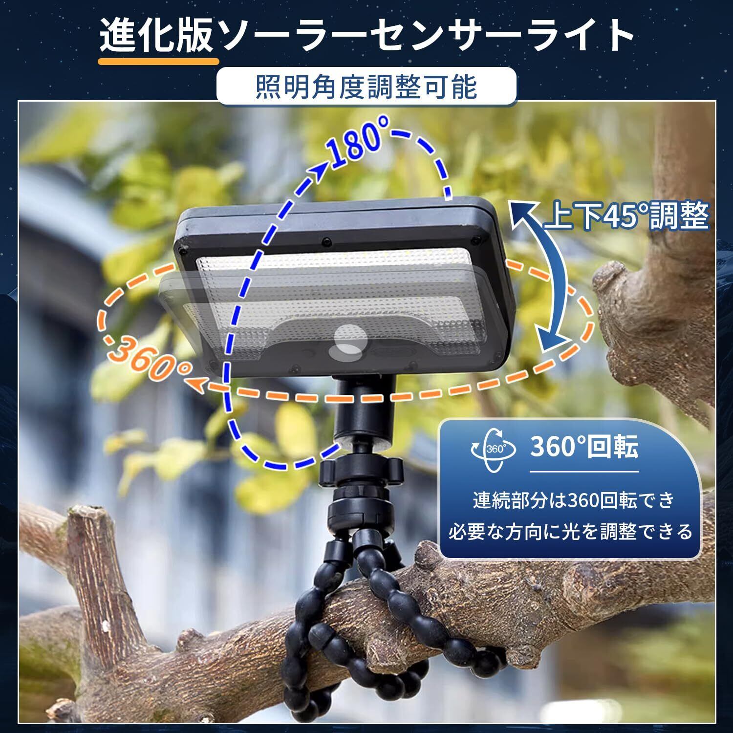 ◆Lasola ソーラーライト 屋外 IP65防水 ソーラー 人感センサーライト フレキシブル三脚付 & 360度調整ランプ USB充電可 3つ知能モード 600ルーメン超高輝度 自動点灯/消灯