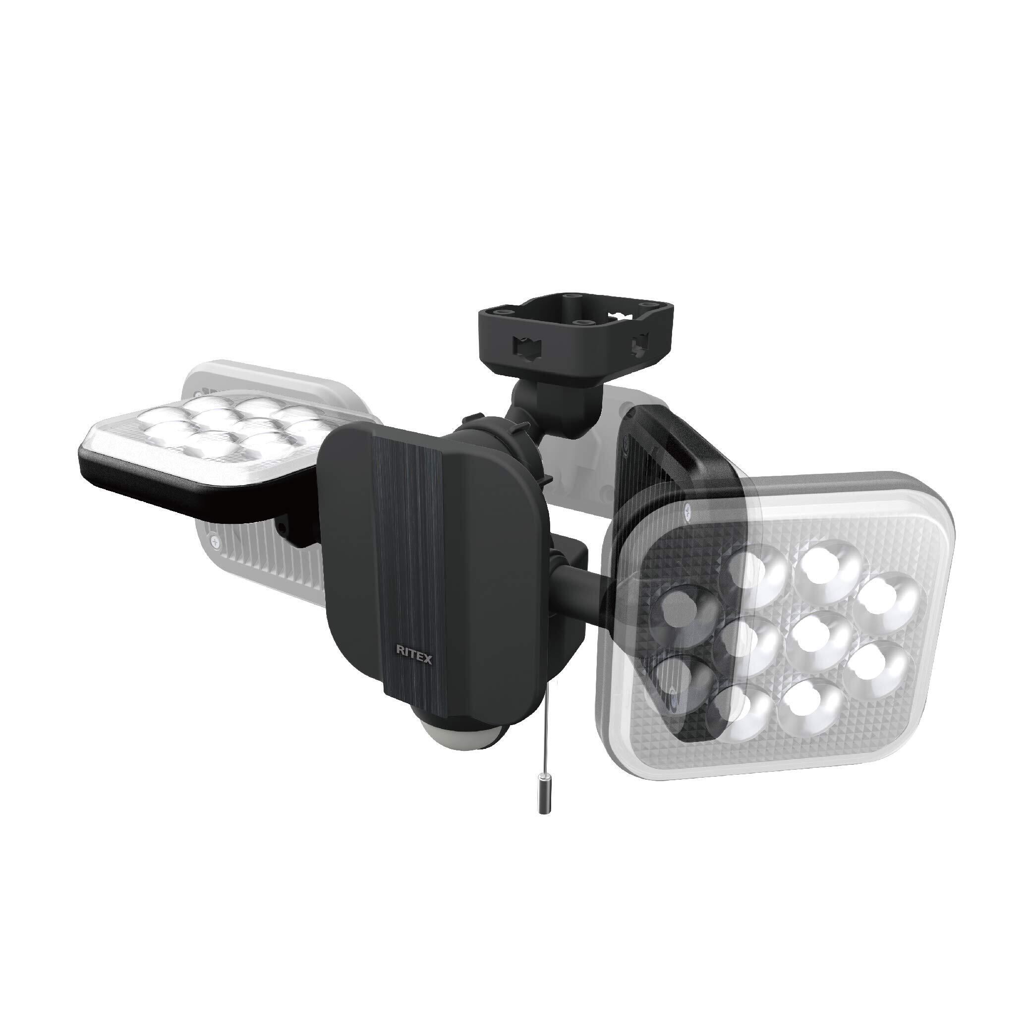 ムサシ(MUSASHI) センサーライト ブラック 本体サイズ: 幅 29.5 × 奥行 12.5 ×高さ 14.6 cm 11W×2灯フリーアーム式LEDセンサーライト LED-AC2022