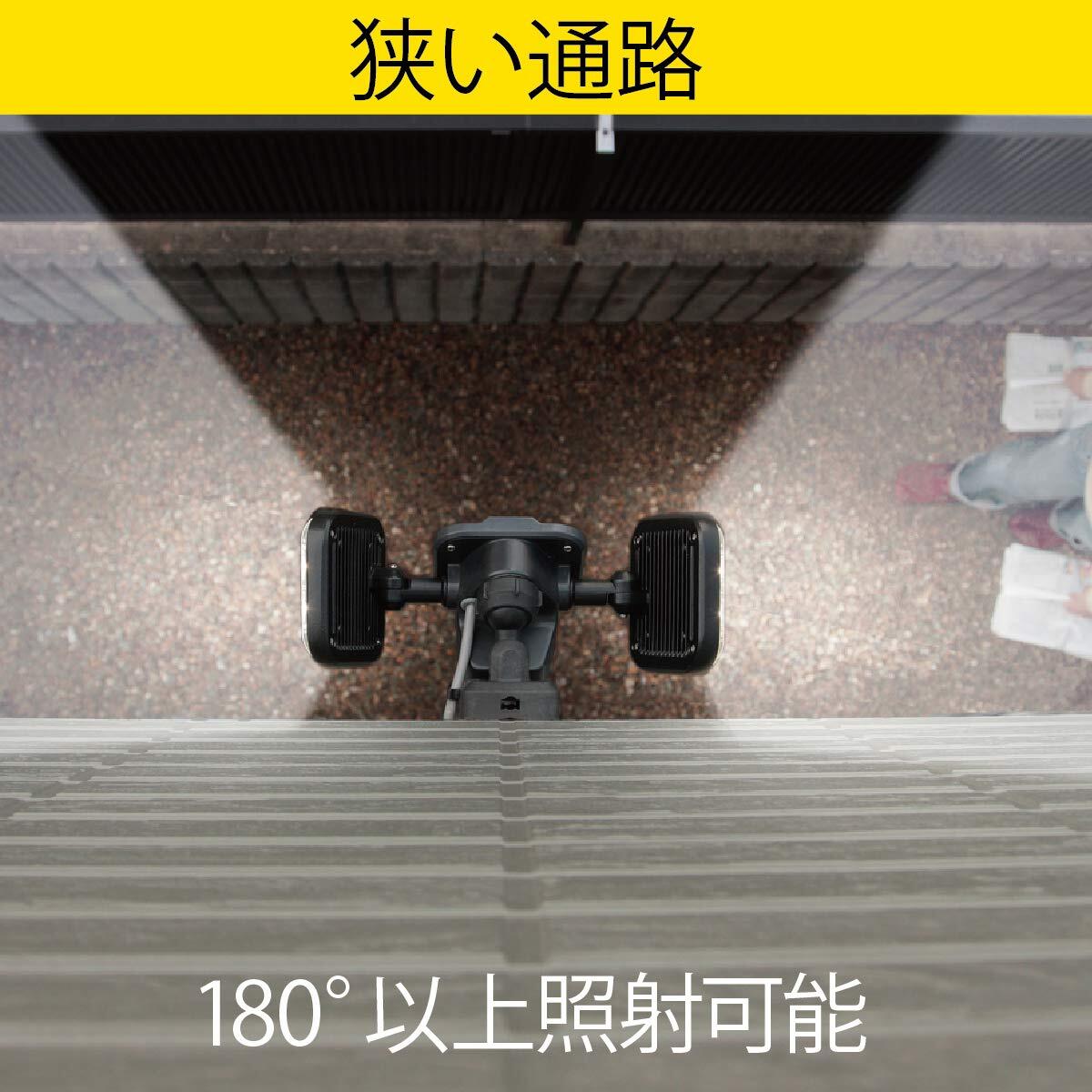 ムサシのセンサーライトは、11Wの高輝度LEDを2灯搭載し、幅広い範囲を明るく照らします。フリーアーム式デザインにより、照明の角度調整が自由自在。お好みの場所へ照射できるので、玄関や庭、駐車場などの照明ニーズにぴったりです!