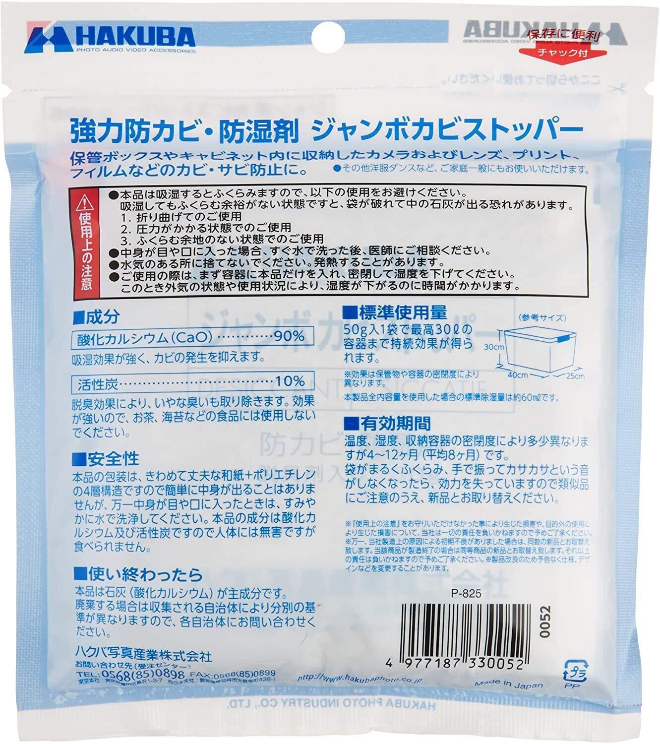 ◆ハクバ HAKUBA 防カビ 防湿剤 ジャンボカビストッパー (50g×4個入) 強力吸湿タイプ 大容量タイプ 脱臭剤入り 除湿剤 P-825 4977187330052
