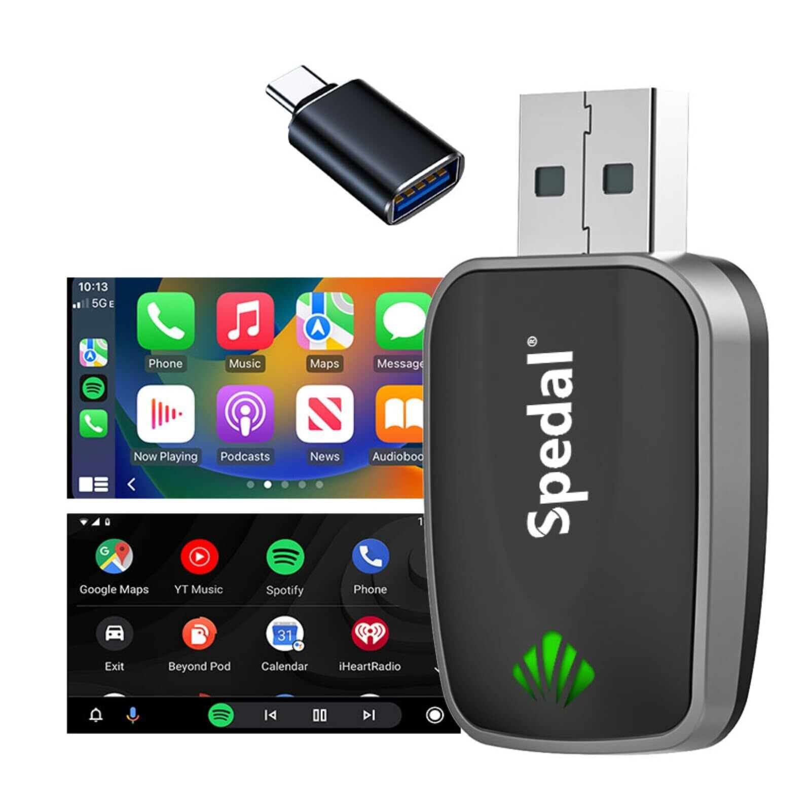◆【ワイヤレスで快適なカーライフを!】2025最新Miniワイヤレスアダプター Spedal 2in1 CarPlay&Android Autoアダプター 【技適認証取得済み】