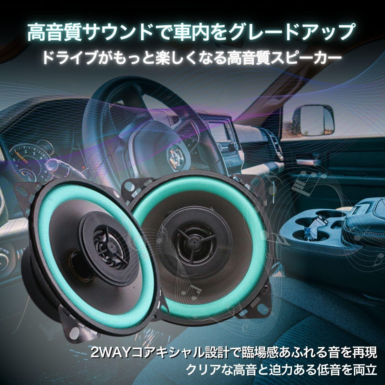 【4インチで高音質】4インチ(10cm)2WAYコアキシャル設計のスピーカーが、車内音響をワンランク上へ。純正スピーカーからの交換に最適。
