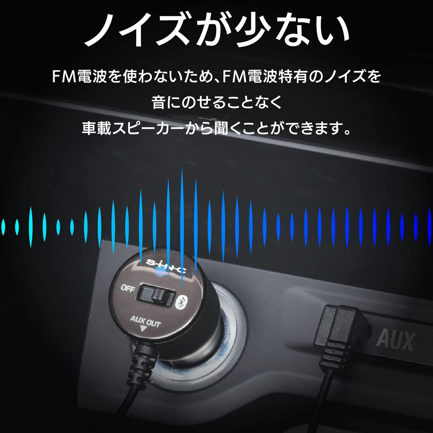 スマートフォンとBluetooth接続を行い、音楽ファイルをAUX経由で入力して車載スピーカーで楽しめるBluetoothレシーバー。