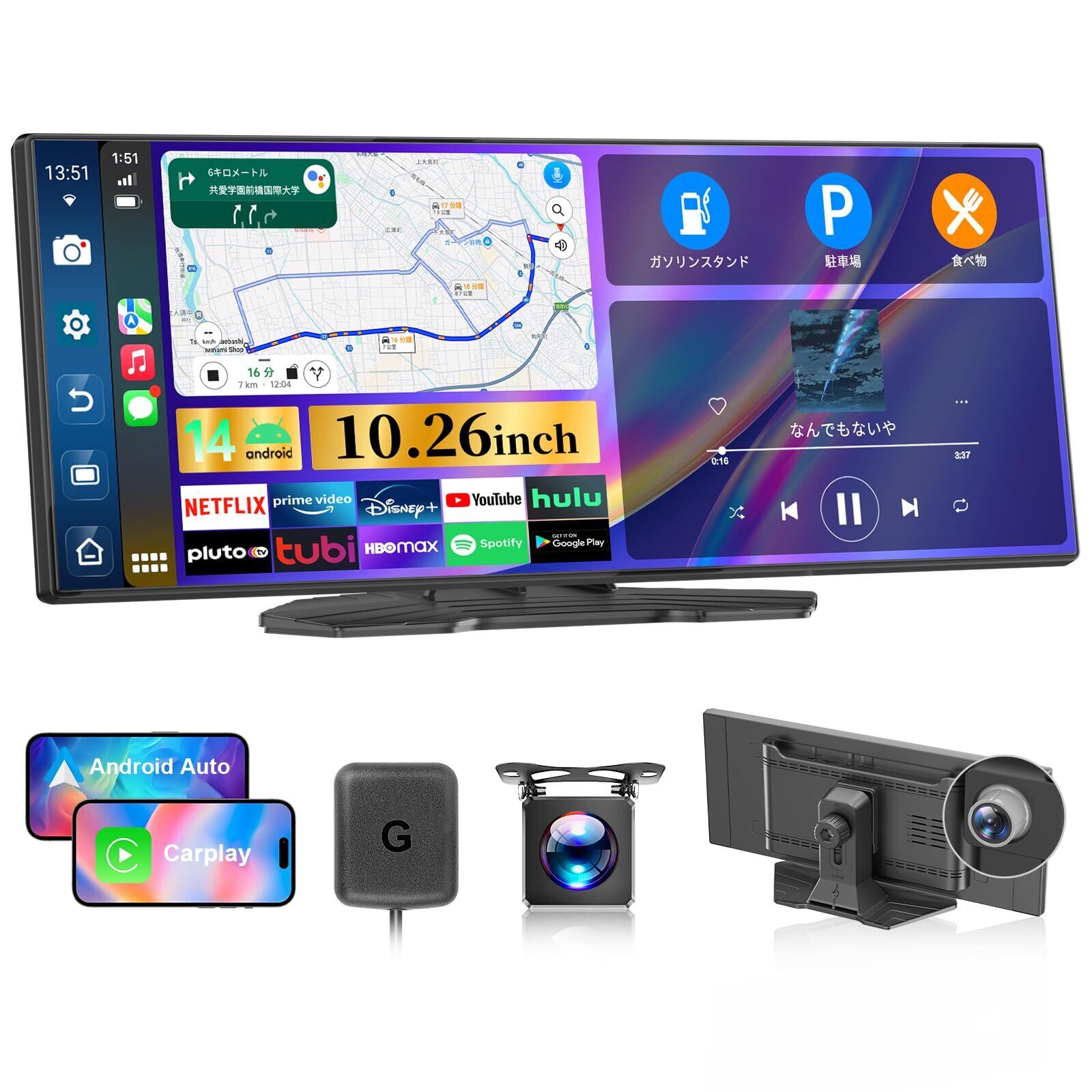 【簡単取り付け & 全車種対応】ディスプレイオーディオ対応バックカメラ付きカーナビは、ベーススタンドで多様な取り付け位置に調整可能。着脱と交換が非常に簡単です。配線改造は不要で、10.26インチの車 テレビをダッシュボードに設置し、シガーソケット電源に接続するだけで、すぐに使用できます。ペアリングは初回1回のみで済み、以降は車に乗るたびに自動接続。このポータブル カーナビの動作電圧は12V〜24Vであるため、セダン、トラック、RV、SUV、ピックアップトラック、旧モデル車など、あらゆる車種にご利用いただけます。※録画にはmicroSDカードが必要です。の活動を参加し、64GBカードを無料で提供可能です、お気楽にご連絡ください。連絡先:説明書の最後のページを参照してください。