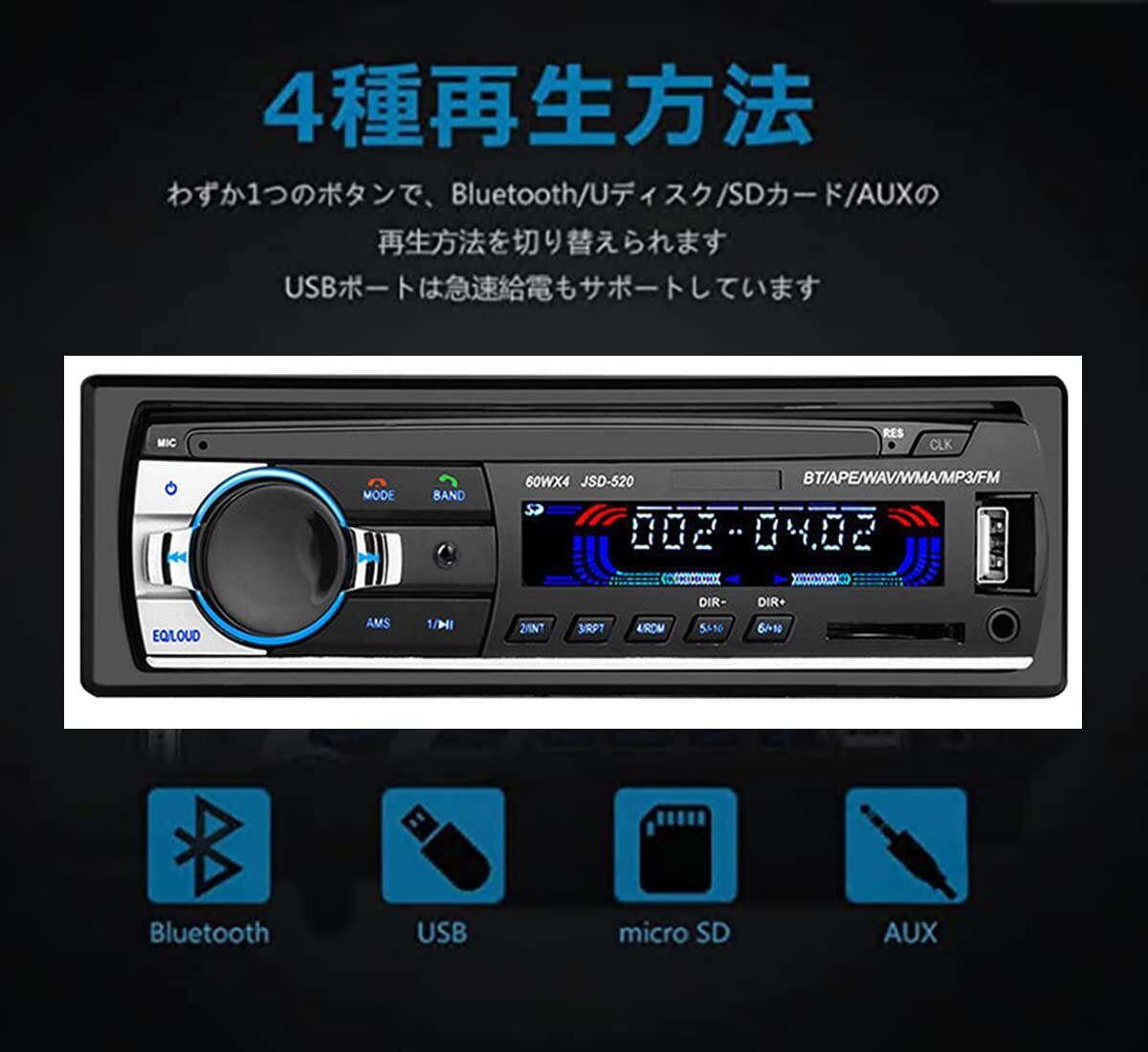 【60W×4!出力パワー改良!】カーオーディオの出力パワーをアップグレード!他の45W出力パワーより、もっと大きな再生音声、もっと強いサブウーファー効果を与えます!サポートオーディオ:MP3/WMA/APE/FLAC/WAV