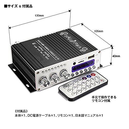 オーディオアンプ コンパクト 高出力 USB/SDカード/Bluetooth対応 Hi-Fi ステレオAMP 小型アンプ 12V 車載アンプ K-AMP01-B
