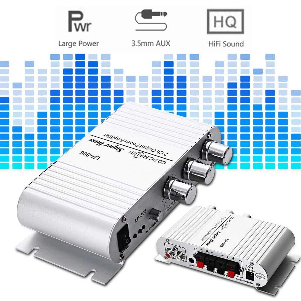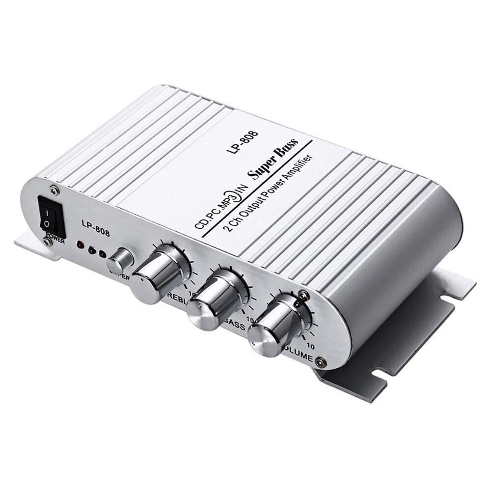 ミニパワーアンプ 12V 20W * 2 カーアンプ MP3 MP4 ハイファイ LP-808 ホームステレオオーディオパワーアンプスーパーベースオートバイ PC
