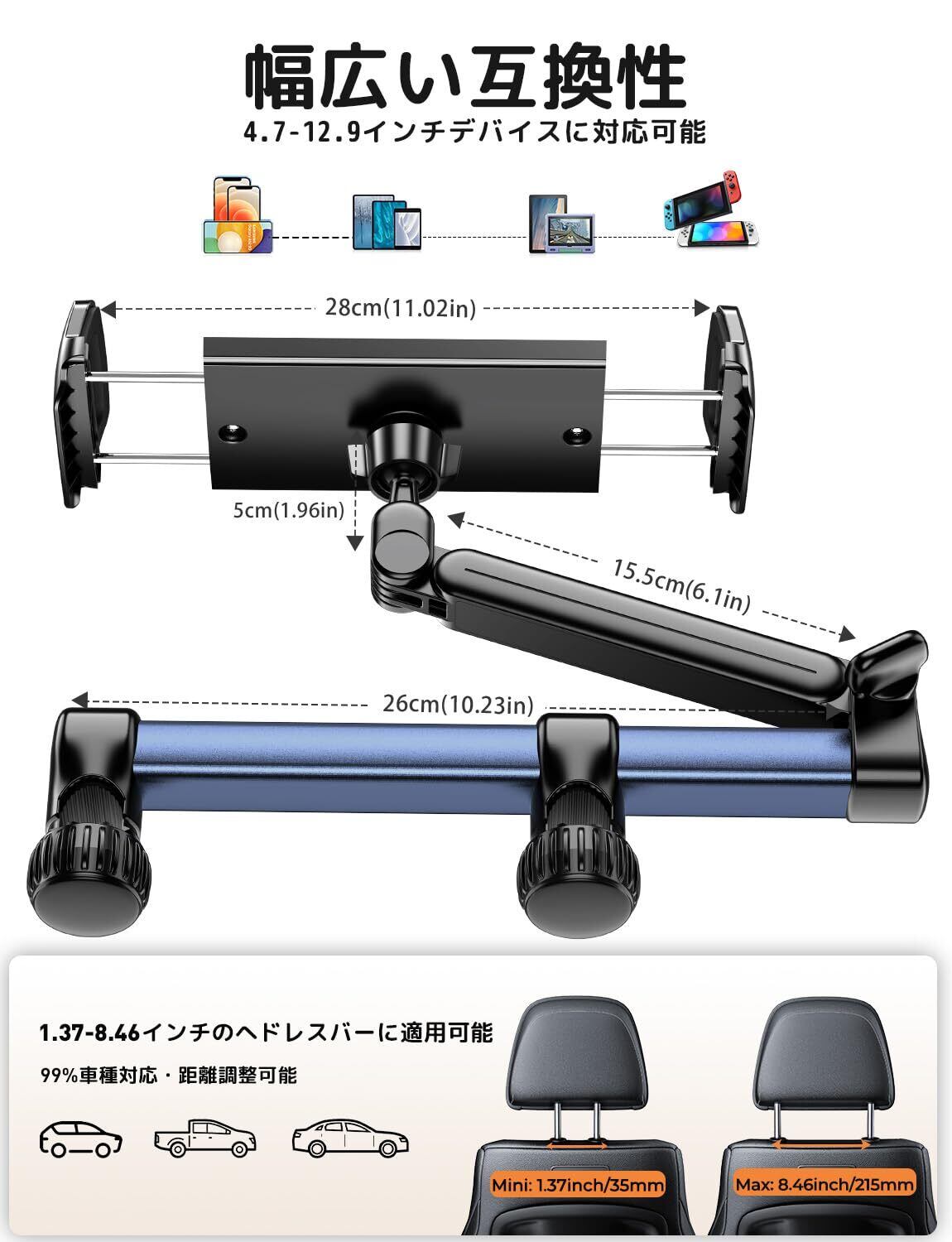◆【後部座席でも快適にタブレットを楽しむ!】TRYONE タブレット ホルダー 後部座席 車載ホルダー ヘッドレストホルダー 後席 真ん中 伸縮アームスタンド スマホ ホルダー 車載タブレットホルダー バーの適用幅範囲3.5cm~31.5cm 後部座席用4.7-12.9インチ対応 ipad/fire HD/android/kindle/iphone 16に対応
