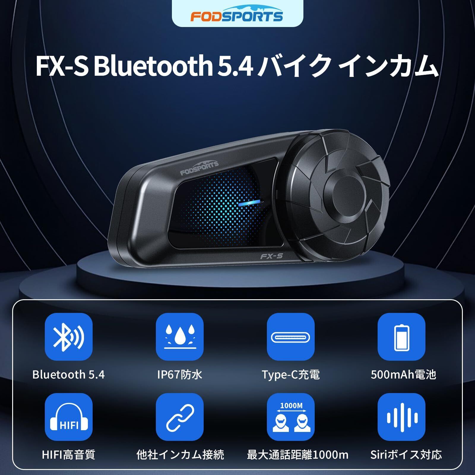 FODSPORTS バイク インカム FX-S インカム Bluetooth5.4 充電ながら使用 2人同時通話 インカムバイク用 通信機器 最大通話距離1000M 40mmヘルメットスピーカー 通信自動復帰 HIFI音質 バイク用無線機 いんかむ 他社インカム接続可能 インターコム ヘッドセット IP67防水 音声コマンド Siri対応 Type-C充電 技適認証済み 日本語説明書 (1台)