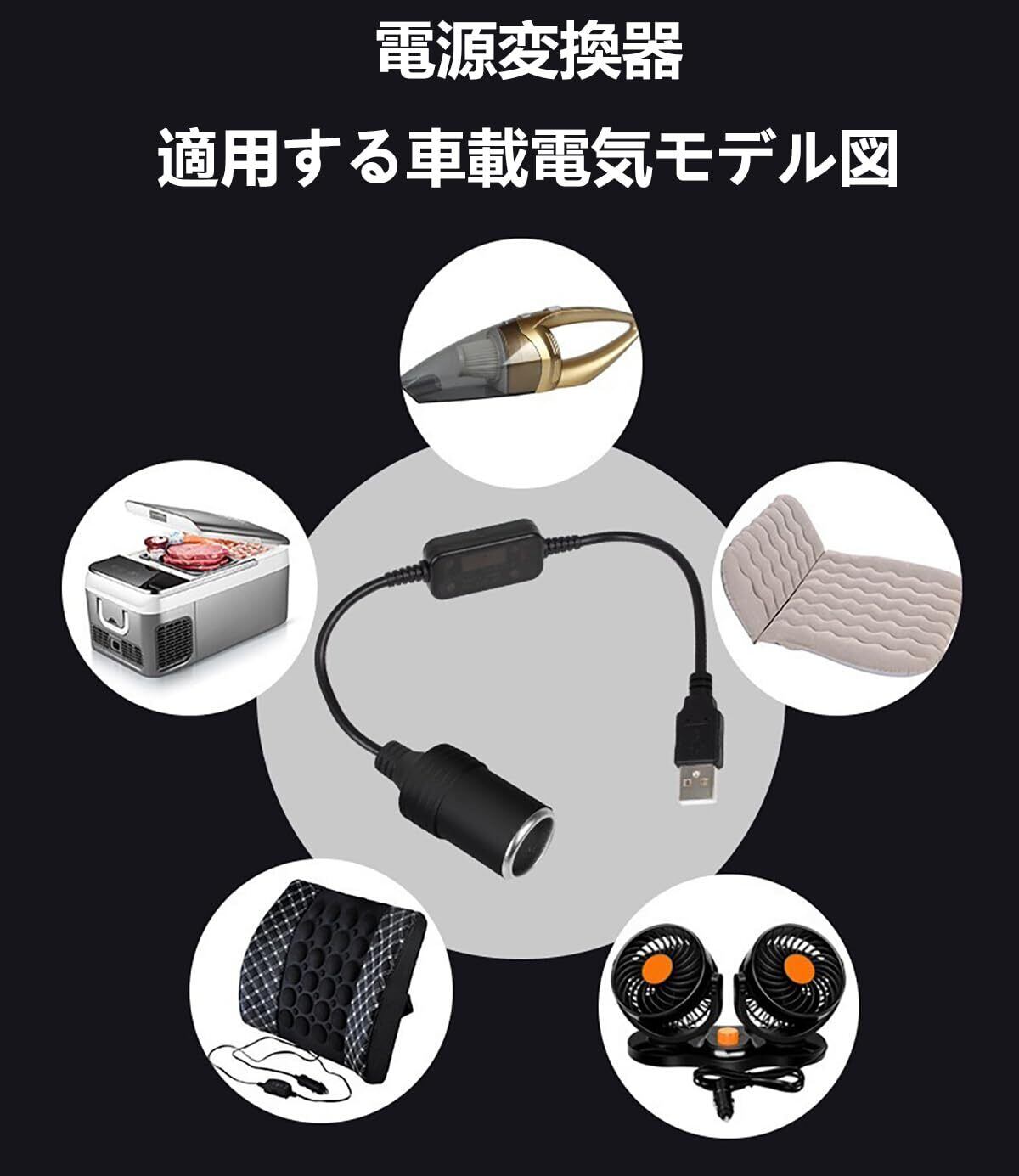 【USBポート電力変換器機能】この装置はUSBポートからの電力を12Vのシガレットライターソケット用に変換します。