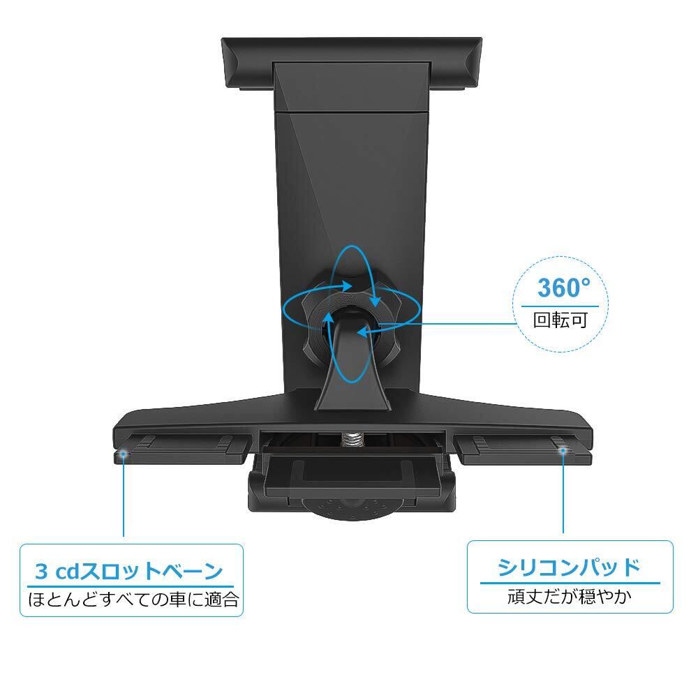 EXSHOW CDスロットかーマウント iPad車載ホルダー 車CDプレーヤー取り付けタブレットホルダー 片手で操作 360度回転可 iPad Pro 12.9 11 10.5, iPad Air 5 4 3 2 1, iPad mini 5 4 3 2 1, Samsung Galaxy Tabs など7-12.9インチタブレット向き