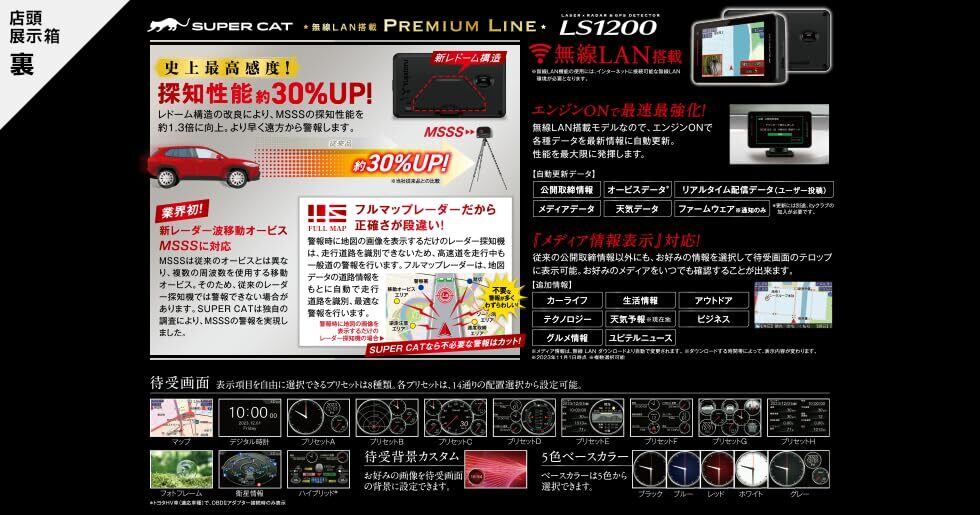 ユピテルLS1200は、業界初のMSSS移動オービスに対応した最新のレーザー&レーダー探知機です。探知性能が従来品より約30%向上し、より高精度で迅速な情報提供を実現しました。これにより、運転中の安全をしっかりと支えます。