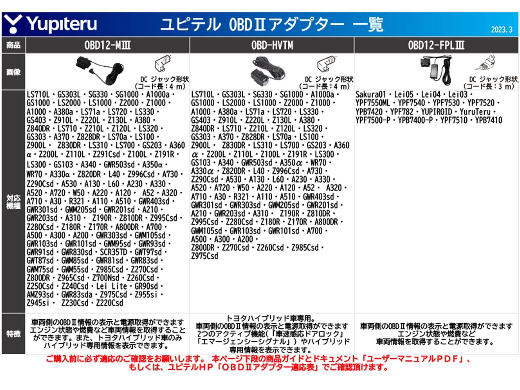 ユピテル(Yupiteru) レーダー探知機用OBDII接続アダプター SuperCAT OBD12-MIII