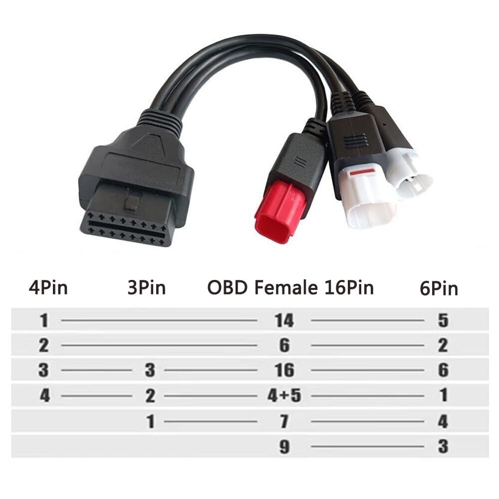 【3in1】ヤマハやホンダをはじめ、多くのオートバイのECU診断に対応する、3種類のコネクター を備えたOBD2アダプターケーブル。マハ3ピン・4ピン、ホンダ6ピンに対応し。