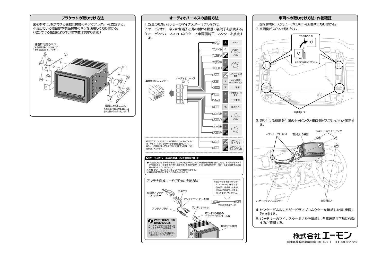 本製品は車種別対応のため取り付ける車種の適合をエーモンホームページでよくご確認ください。専用オーディオ装着車には使用できません。