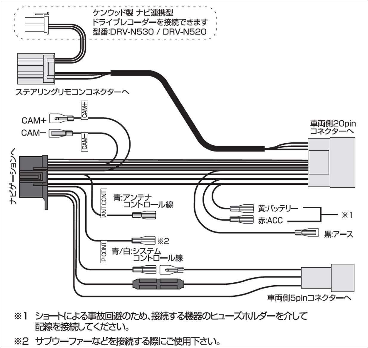また、メインハーネスにはステアリングリモコン接続用の配線が入っておりますので、車両純正のステアリングリモコンをケンウッドナビゲーションで活用することができます。