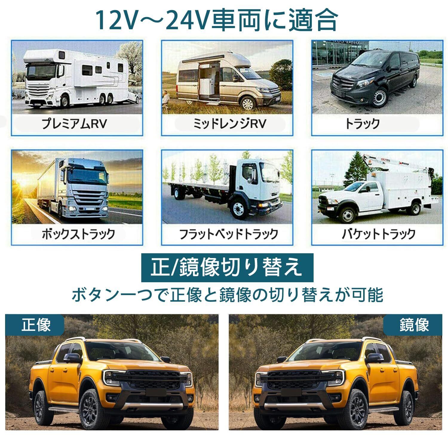 【ノイズ防止4ピンケーブルと常時使用可能】15メートルの延長ケーブル付き、トラック・キャンピングカーの後方確認に! 12Vから24Vまで使用できるので、大型車にも取り付け可能です(通常の自動車はもちろんです)。一方、バックカメラをバック連動だけではなく、常時電源と接続の場合、常時画像が映り、リアルタイム監視の機能として使用いただけます。そして、フロントカメラ用にも使用できます