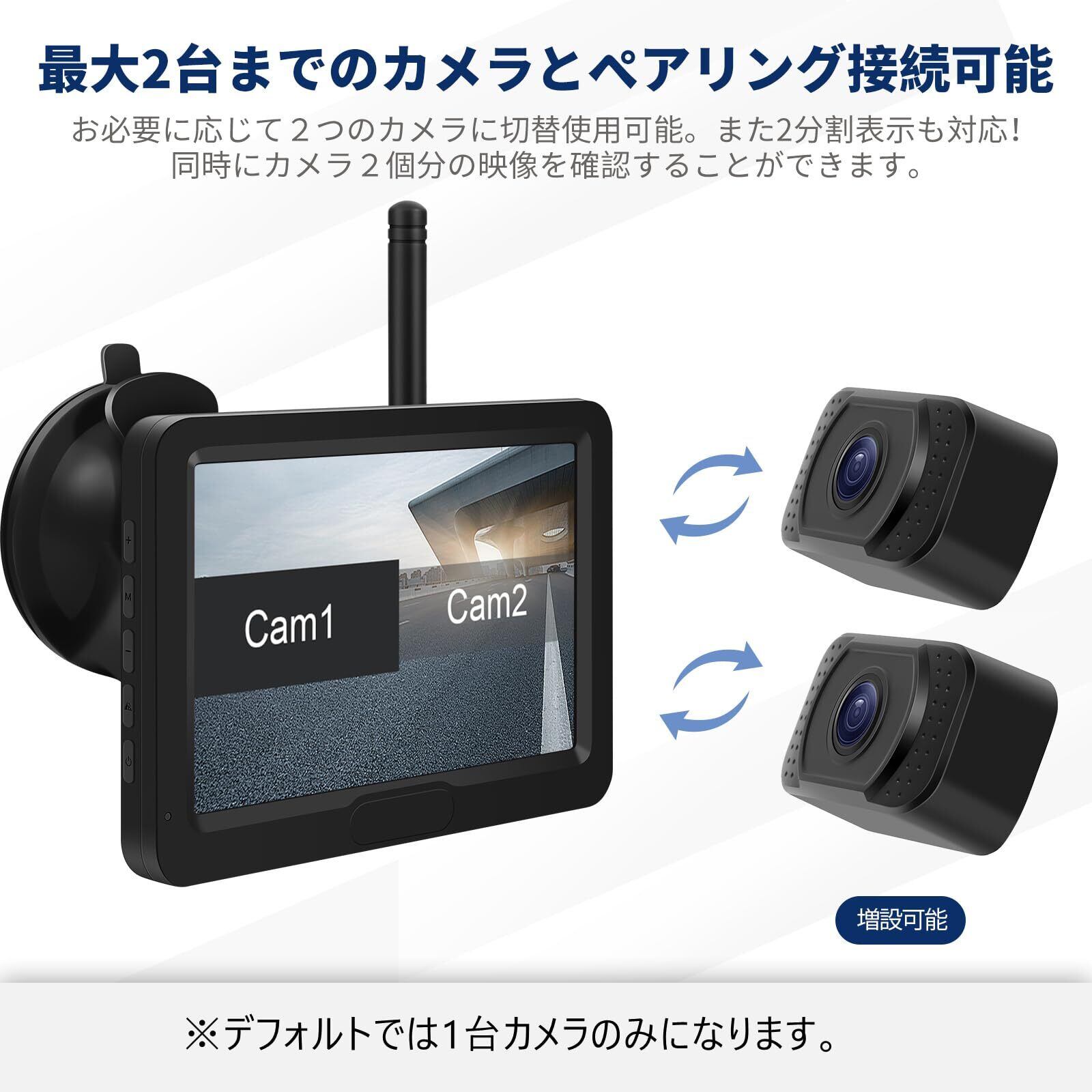 【2分割表示対応】バックモニターは2分割表示対応、最大2台までのカメラとペアリング可能!2番目のカメラをモニターにペアリング接続すると、必要に応じて2つのカメラに切替使用可能。2分割表示対応なので、もちろん同時にカメラ2個分の映像も確認することができます。