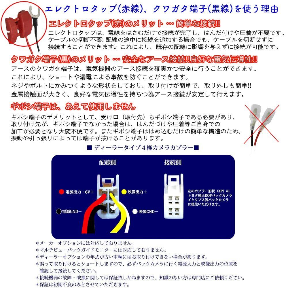 トヨタ/ダイハツ/イクリプス純正バックカメラ4ピン配線から社外ナビ用RCA端子へ変換します。