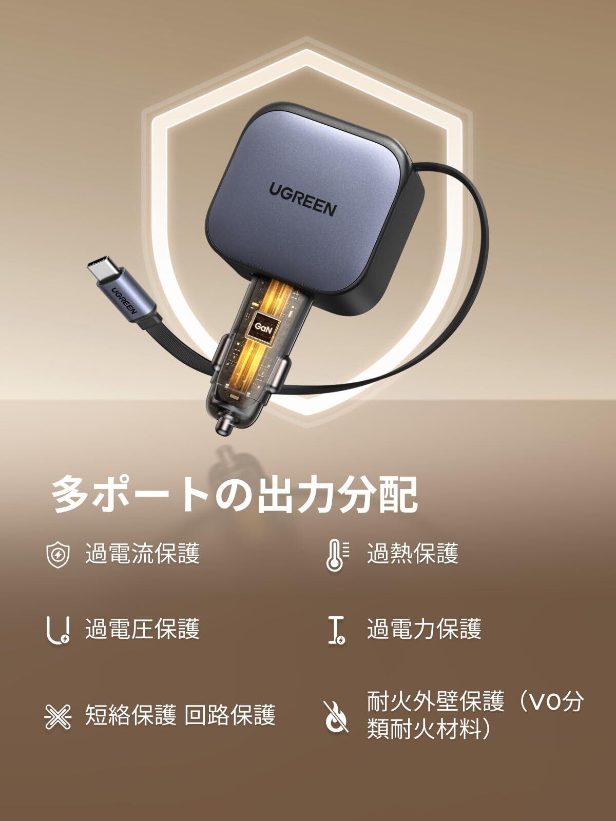 【PD30W急速充電】シガーソケットのトレンド?最大30Wで急速充電、スマホもタブレットも一気にフル充実!利便性と高性能を兼ね備えるUGREEN巻き取り式シガーソケットで、統一感ある車内空間を!