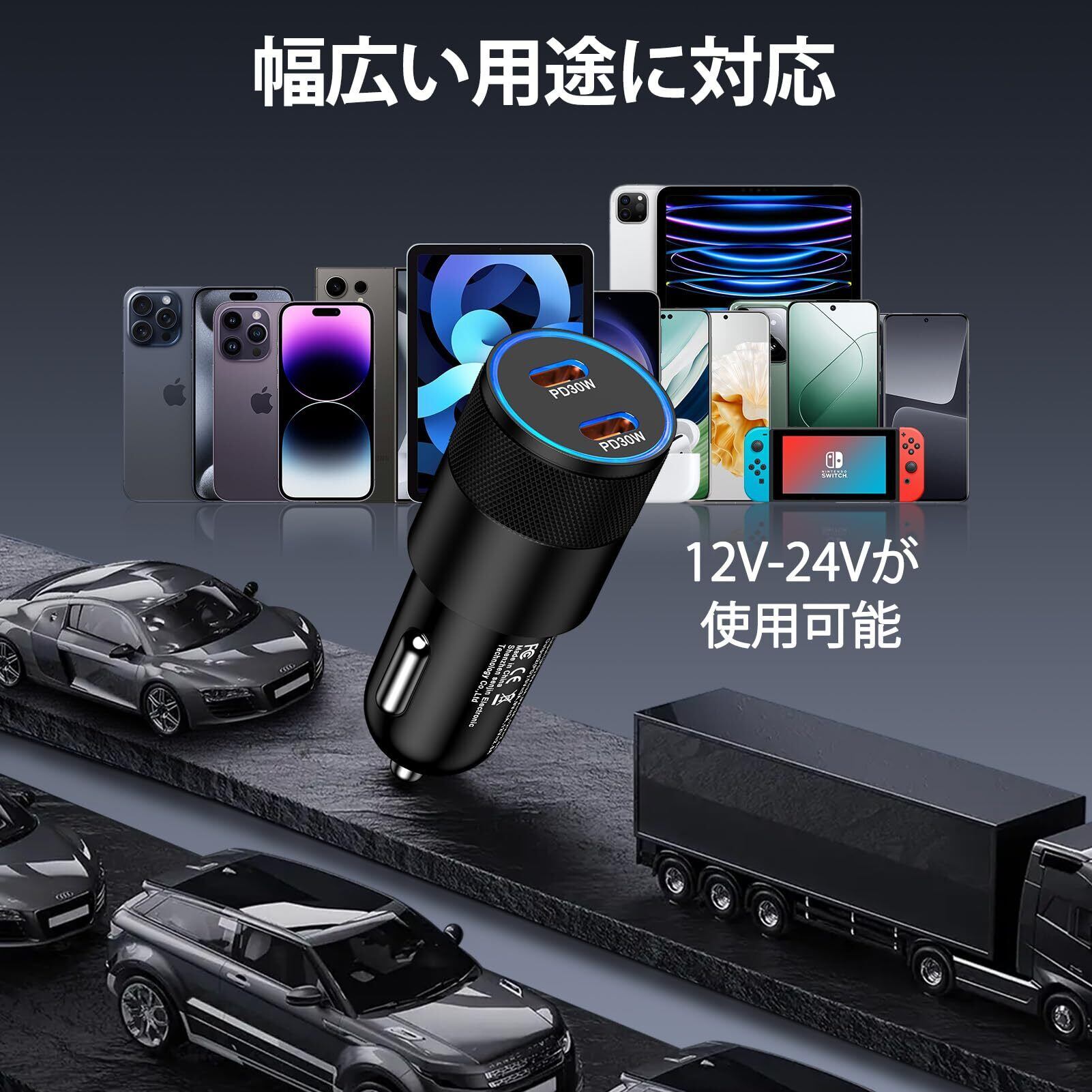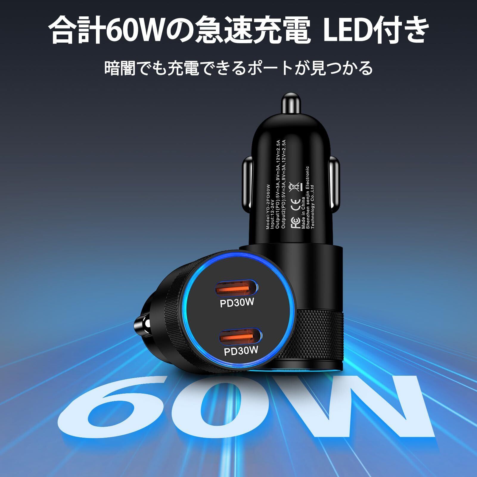 60W PD対応 カーチャージャー 高出力 車載充電器 急速充電 シガーソケット Type-Cとシガーソケット Type-C 車 充電器 usb 2ポート カーチャージャー タイプc 超小型 シガーソケット アルミニウム合金製造 車 充電器 12V/24Vシガーライター iPhone 16 シリーズ/iPad/AirPods/Mac/Samsung/XIAOMI/Android/などの機種に対応