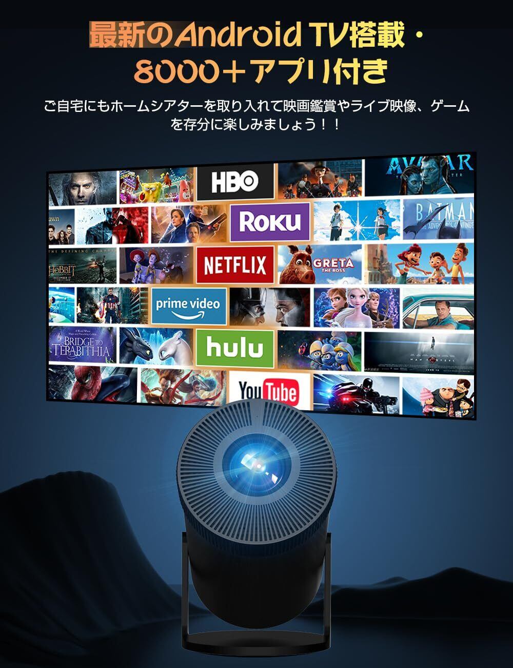 プロジェクター 家庭用【2025年新登場!28000LM・270°回転・4K対応・最新Android TV搭載】1080P プロジェクター 天井投影 Wi-Fi6瞬間接続 50%ズーム機能 自動台形補正 Bluetooth ホームプロジェクター 小型 高輝度 短距離投影 軽量 スマホ/パソコン/PS機/DVD接続可 スタンド一体型 プレゼント 三年期間 日本語取扱説明書