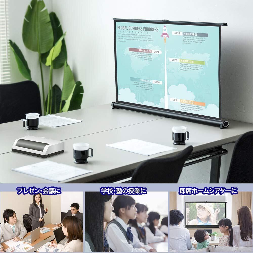 イーサプライ プロジェクタースクリーン 40インチワイド 16:9 4K 自立式 机上 卓上 小型 モバイル 軽量 EEX-PSM4-40HD