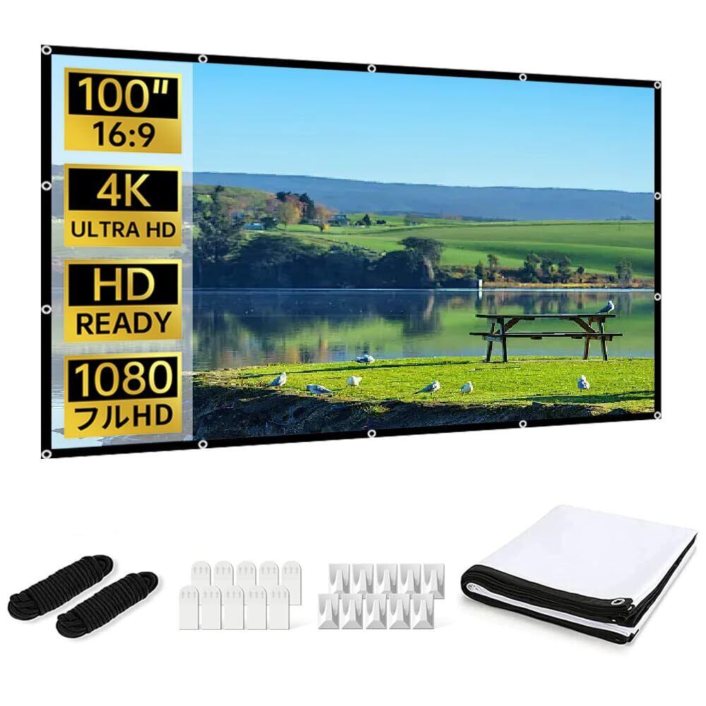◆Goripedia プロジェクタースクリーン ホームシアター スクリーン 持ち運び 軽便 84インチ 16:9 視野角179° 両面投影 (取り付けのツール付き) フルHD 4K解像度 適用 洗濯可能 投影用 会議 教室 屋外屋内用 映画(100インチ)