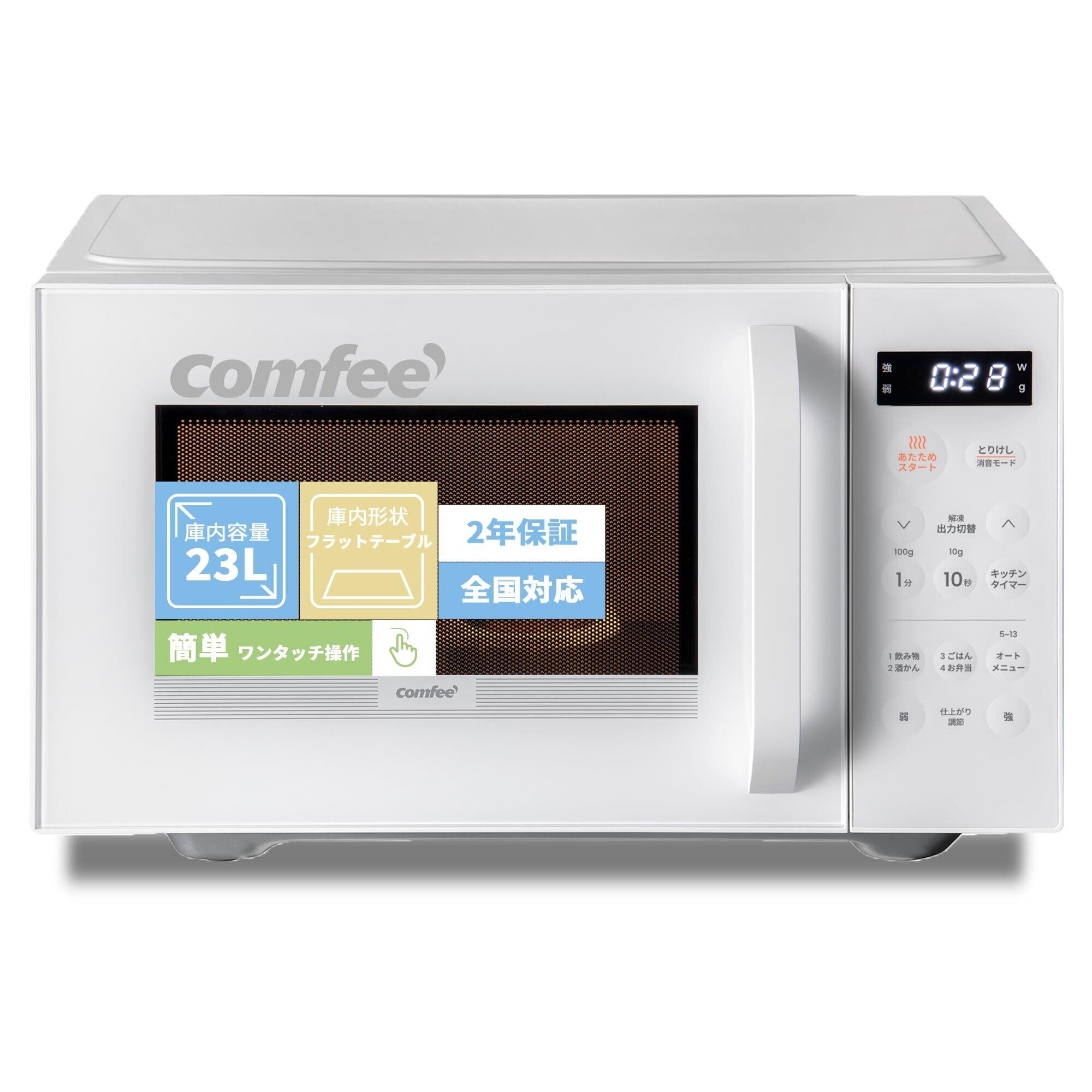 コンフィー(COMFEE') 電子レンジ23L フラットテーブル【2024年新モデル】 単機能 ヘルツフリー 全国対応 オートメニュー13種搭載 消音・チャイルドロック機能 液晶画面付き CMO-EMP032XFPG ホワイト
