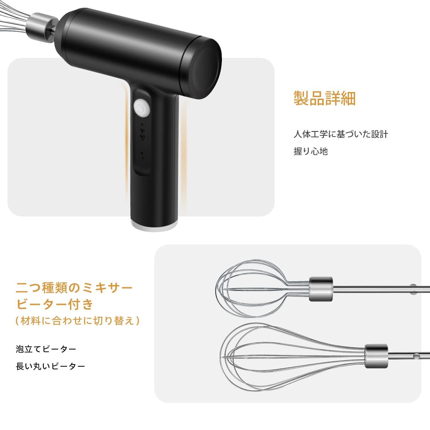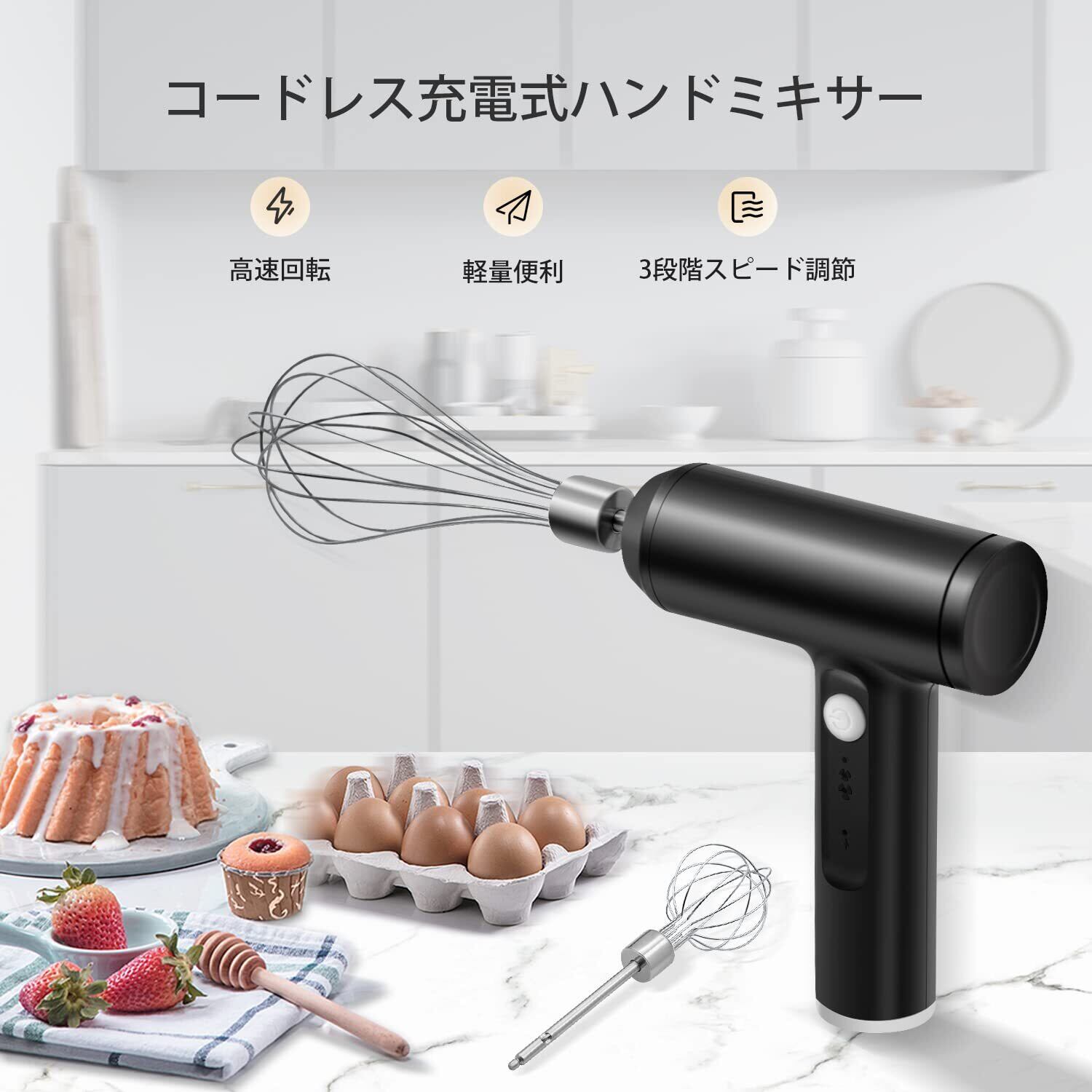 ◆Mcbazel ハンドミキサー 小型サイズ泡立て器 電動マドラー コードレス 3段階スピード調節 充電式 キッチン用 調味料・卵・ジャム・栄養補助食品・ミルクセーキ・たまご・クリーム等々食材対応 お菓子・ケーキ作り 美容院/室・美容師用 カラー剤混ぜる 多機能&軽量 -ブラック